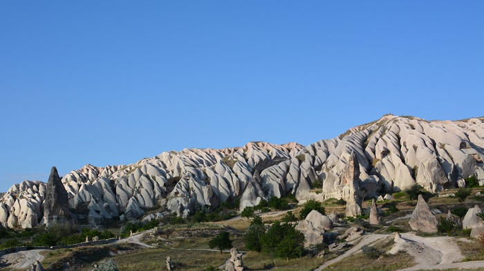 Nacionalni park Kapadokija leži na okoli 1000 m visoki anatolski planoti. Pred približno 40 milijoni let je na tem mestu stalo slano jezero. Okoliška vulkana sta tisočletja bruhala v zrak lavo in prah. Droben prah in pepel so potovali najdlje in počasi ustvarjali pokrajino Kapadokije, dokler ni slano jezero povsem izginilo. V stoletjih se je vse skupaj povezalo, utrdilo in povezalo v vulkanski tuf. Voda je nato rezala mehko podlago in ustvarjala pravljično podobo. Včasih je naletela voda tudi na oviro (trši kosi lave), zato so se oblikovali stožci prav posebnih oblik. Če ni že padel, je na vrhu trd bazaltni kamen. Velika posebnost je, da niti dve dolini nista enaki. Tako poznamo dolino ljubezni, dolino gobic, dolino dimnikov, kameljo dolino, Gaudijevo dolino.