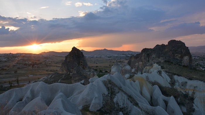 V Kapadokiji so se zelo zgodaj naselili tudi prvi prebivalci. Rodovitna prst, obilje vode in sonca je privlačila mnoge. Pomembna strateška lega na svilnati poti karavanarjev je omogočala pravi razcvet mesta. Ker so v bližini hribi, je bila pot skozi Kapadokijo vedno tudi najlažja pot. Že prvi prebivalci so si domovanje naredili kar v mehkem vulkanskem tufu z izkopavanjem. Za domove so si najraje izbrali stožce, saj so že imeli obliko hiše. Kjer ni bilo jurčkov, pa so izkopavali v globino. Tako so živeli v jamah, v naravnih klimatskih pogojih. Ljudje še danes živijo enako in imajo domove, hotele in restavracije urejene kot nekoč. Tudi midva sva izbrala nočitev v enem od jurčkov, kjer je bila samo dodatno urejena kopalnica. Soba je bila izklesana v vulkanski tuf. Bilo je prijetno hladno in z rahlim vonjem po zemlji. Zares čudovita izkušnja, ki je ne smete zamuditi.
