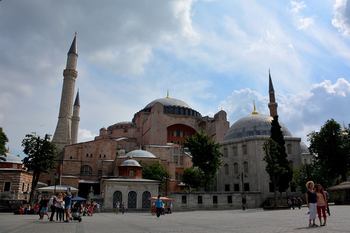 Samo nekaj korakov stran od Modre mošeje stoji še druga mošeja, ki velja za najveličastnejšo in najpomemnejšo zgradbo v mestu. Hagia Sophia ali Bazilika Sv. Sofije (vstopnina 10 EUR/osebo) je bila zgrajena že leta 537 v času cesarja Justinijana. Njena največja posebnost pa je, da se je kot cerkev uporabljala vse do turške osvojitve Istanbula leta 1453, ko jo je sultan Mehmet II. spremenil v mošejo. Turki notranjosti niso uničevali, ampak so mozaike le prekrili, kar lahko vidimo ob obisku še danes. Že leta 1934 jo je Atatürk spremenil v muzej. Danes spominja na njeno tako krščansko kot muslimansko preteklost.