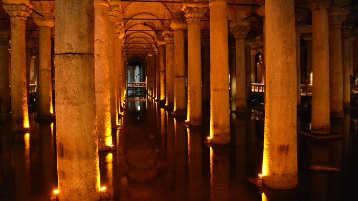 Podzemna palača (Yerebatan Sarayi) velja za najlepšo in največjo bizantinsko cisterno za vodo (vstopnina 6,66 EUR/osebo). Ko vstopite v njen podzemni prostor, resnično ostanete brez besed. Zgrajena je bila v času cesarja Justinijana v 6. stoletju in je po površini enako velika kot Hagia Sophia. Krasi jo 336 antičnih stebrov, ki so jih pripeljali sem iz porušenih antičnih templjev. Velja za največjo cisterno v Istanbulu in meri kar 70 krat 140 m. Vodo so v mesto dovajali po Valensovem viaduktu, jo zbrali v cisterne in jo nato speljali v vodnjake. Voda je bila v rimskem času javna dobrina. Turki cistern niso uporabljali, saj so menili, da je voda onesnažena. Skozi stoletja se je nabralo blato, ki so ga v 20. stoletju očistili. Od leta 1987 je cisterna odprta kot muzej (UNESCO).