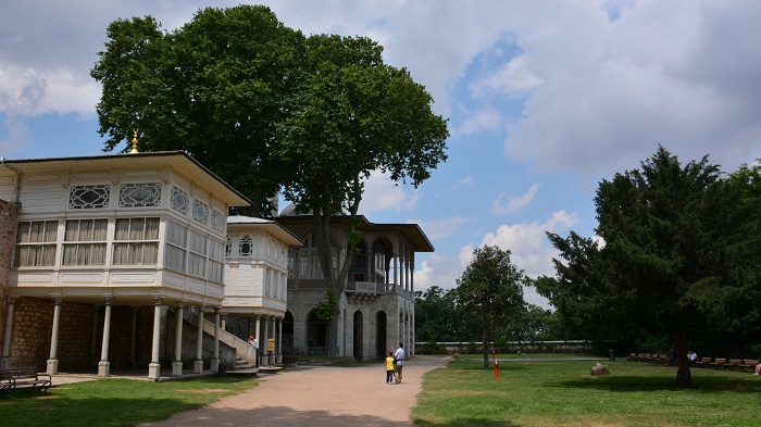 Palača Topkapi (vstopnina 10 EUR/osebo; ni vse vključeno v to osnovno ceno) je bila več kot 4 stoletja cesarska rezidenca osmanskih sultanov. Palačo je začel graditi leta 1453 Mehmet II. Osvajalec, potem ko je osvojil Konstantinopel in ga preimenoval v Istanbul. Najprej je bila zgrajena manjša palača, nato kmalu dodal še eno. Vse skupaj so obzidali z masivnim zidom in nova palača je dobila ime Topkapi, kar pomeni Kanonja ali Topovska vrata. Skozi leta so palačo dozidavali in ob njej uredili razkošne vrtove in prekrasne parke. Danes lahko občudujemo ogromen kompleks dvorišč, stavb in vrtov. Palača je bila sultanovo bivališče in harem, dvor, sedež visokega izvršnega sveta, kuhinja, zakladnica, šola, vojašnica, bolnišnica, pekarna… Leta 1853 je sultan Abdul Mecit I. rezidenco preselil v palačo Dolmabahče ob Bosporski ožini. V muzej so palačo spremeni leta 1924, kjer si lahko še danes ogledamo zbirke porcelana, nakita, miniatur in kaligrafij, oblek, portretov, umetniških del skozi prostore palače. Palača je res ogromna in za ogled celotnega kompleksa bi potrebovali cel dan, zato sva si midva ogledala le nekaj glavnih prostorov.