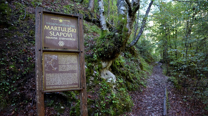 Do prvega slapu je zmerne hoje 40 minut. Pot se začne po gozdu, nato pa zelo hitro preide v ozko pot skozi Martuljško sotesko. V daljavi se že sliši slap in kaj kmalu pridemo do lesenega mostu, s katerega zagledamo čudovit prvi Martuljški slap. Nadaljujemo po precej strmi in mokri gozdni poti do širše gozdne ceste, kjer lahko zavijemo nazaj proti avtomobilu ali pa nadaljujemo do planine Jasenje (Koča pri Ingotu) na kosilo oziroma do drugega slapu, ki je še od koče oddaljen približno novih 40 minut.