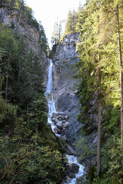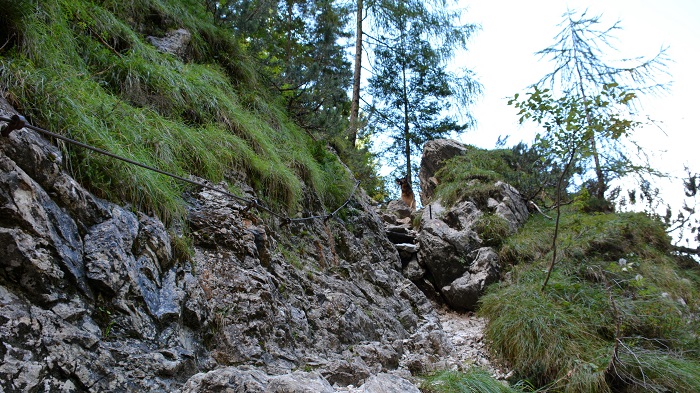 Midva sva se potrudila in nadaljevala do vrha. Priznam, da nisem pričakovala tako strme poti po gozdu, tako da sem kar sopihala na vrhu. Zadnjih nekaj korakov je potrebno poprijeti za nekaj klinov, a je pot vseeno razmeroma lahka. Odpre se tudi pogled v dolino in še nekaj klinov nas loči do mogočnega drugega slapu, ki je skrit za skalo. Vsekakor je vredno malce stisniti zobe in premagati nekaj klinov za čudoviti pogled na mogočen slap.