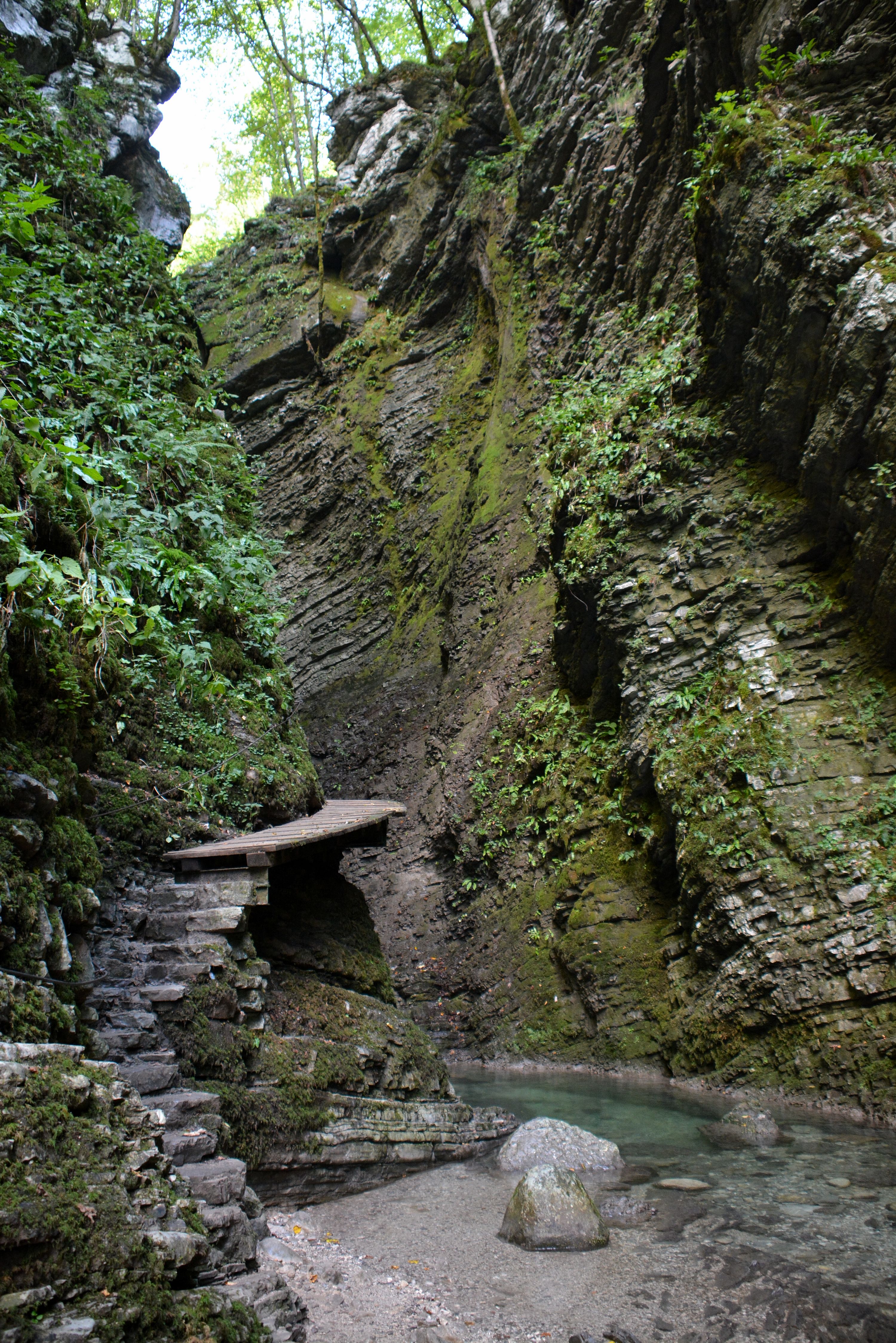 Lepo označene table vas nato vodijo do slapu. Najprej po makadamski poti med travniki, nato pa po gozdu. Zelo kmalu zagledate najlepšo reko na svetu – smaragdno Sočo, ki izvira nedaleč stran od vijugaste ceste na Vršič. Pot je večji del zelo lahka, le na koncu je potrebno stopiti po nekaj mokrih kamnih in nezavarovanih lesenih mostovih, zato priporočam primerno obutev.
