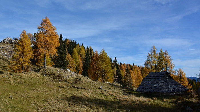 Prejšnji vikend se mi je smejalo do ušes. In še naprej. Najprej sva v soboto uživala v kičastem jesenskem vremenu na Veliki planini, nato pa jo v nedeljo mahnila še na mnogim nepoznano Planino Krstenico. Majhna planina z nekaj tradicionalnimi lesenimi hišami se nahaja nad Bohinjem in je te dni odeta v prekrasne rumene macesne. S planine je tako čudovit pogled v vse smeri, da si težko predstavljam še sploh kaj lepšega. Malica na travniku ima nepredstavljivo vrednost in to so trenutki, za katere je vredno živeti.