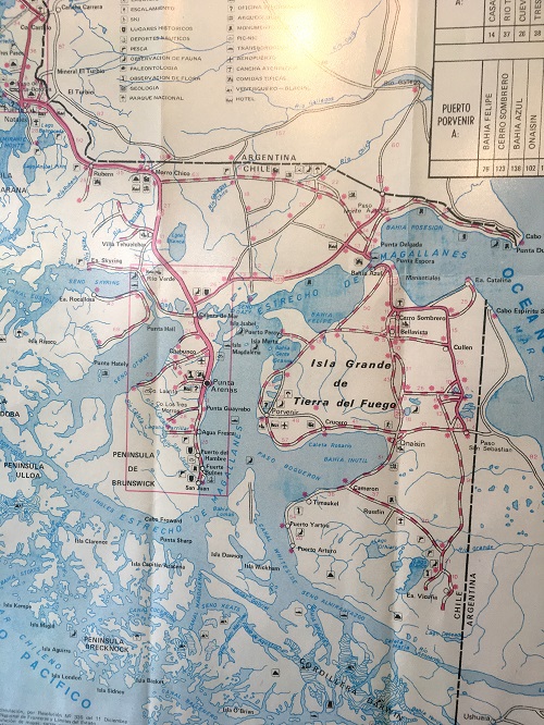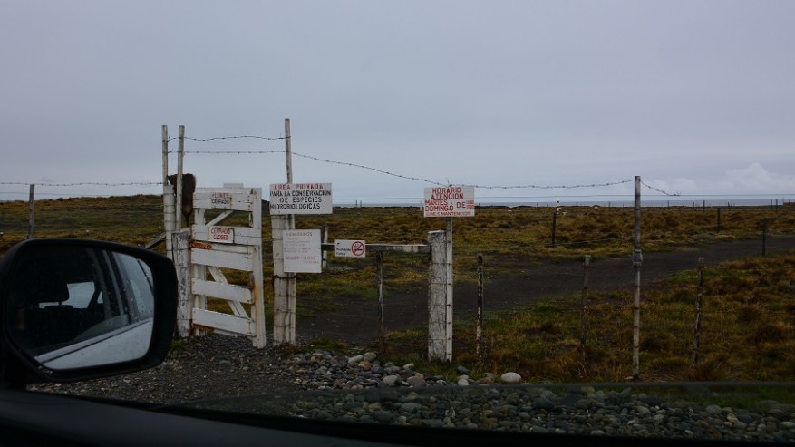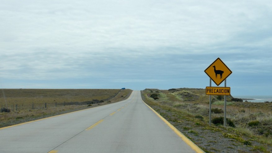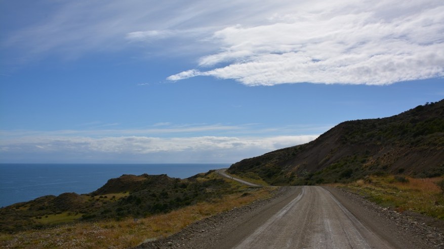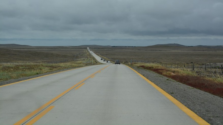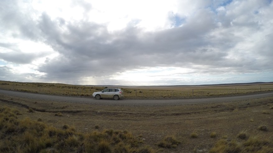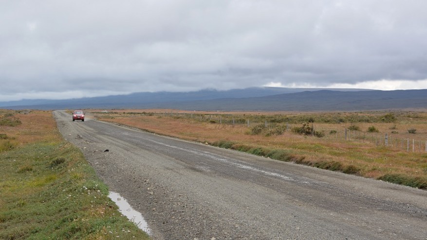 Ko sva se izkrcala, sva se pripravila na makadamsko cesto. A so naju presenetili. Čilenci so zgradili povsem novo asfaltirano cesto, ki je bila pravzavprav ravnokar odprta. Tako sva neizmerno uživala v prekrasni pokrajini, ravni, neokrnjeni, neposeljeni. Samo pašniki polni ovac in divje gvanake na vsakem koraku. Prostranstva neokrnjene narave so naju spremljala kar nekaj 10 kilometrov.