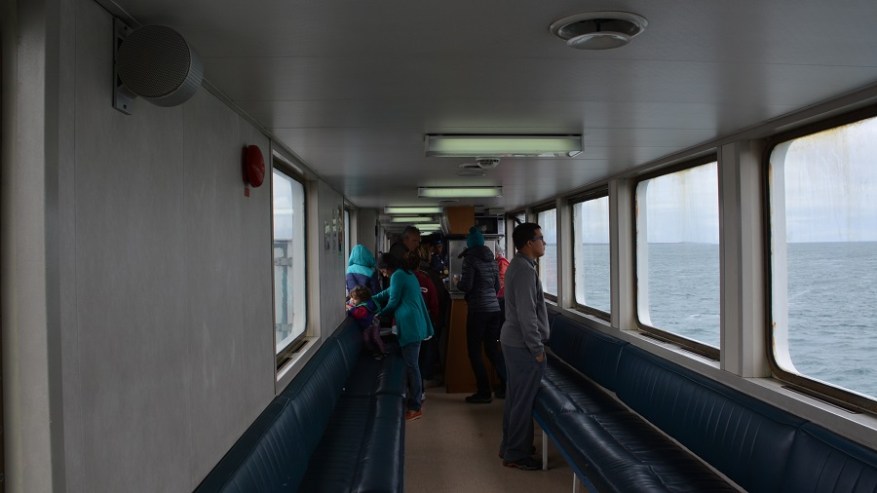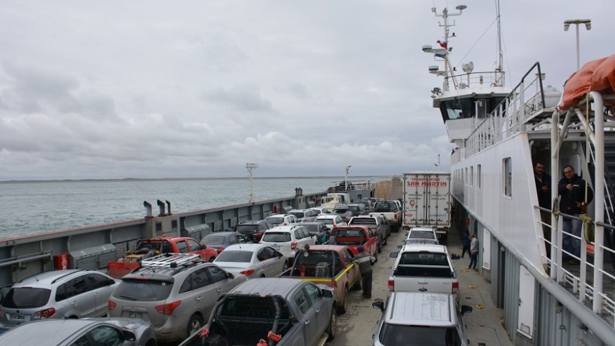 V preteklosti si se lahko vkrcal v Punta Arenasu na trajekt in se odpeljal direktno v Porvenir ter od tam nadaljeval vožnjo. Trenutno ta trajekt ne vozi, zato je potrebno naokoli in na trajekt v Punta Delgadi. Midva sva se lepo vkrcala na ta trajekt, ki vozijo res pogosto. Praktično ves čas, tako da si hitro na vrsti. Prednost imajo kamioni in tovorni promet. Trajekt vozi čez Magelanovo ožino dobrih 20 minut. Vreme je bilo odlično, brez vetra in zato tudi morje zelo mirno. V tem času se lahko okrepčate s hot dogom, kavo ali čajem v majhni kabini.