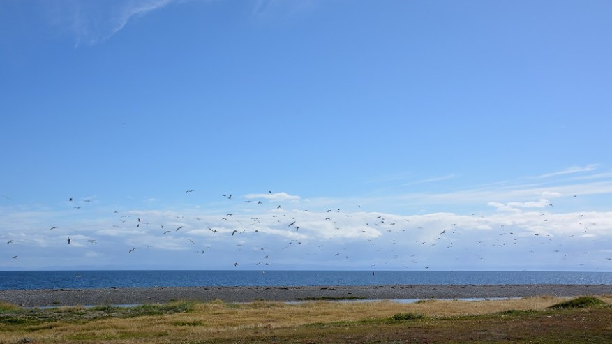 Končno sva prispela do makadamske ceste, ki vodi v desno v Porvenir, po levi pa na konec sveta v argentinsko Ushuaio. Tudi dež nama je začel krojiti dan, a za najin avto to ni bila nobena posebna naloga. Preprosto sva uživala ob pogledu na to divjo naravo. Ob ponedeljkih je park s kraljevimi pingvini zaprt za obiskovalce, zato sva nadaljevala v Porvenir. Prekrasna vožnja ob zalivu, mnogo živali in lepa pokrajina. Srečala sva ovce, gvanake, lame, lisice in flaminge. Kdo bi rekel, da jim utreza tako surovo vreme.