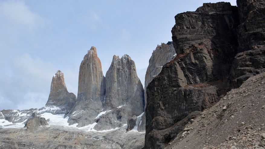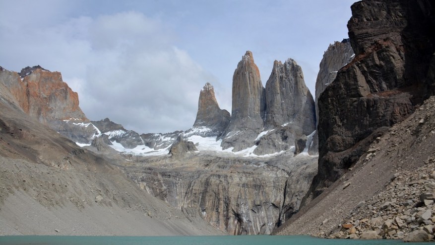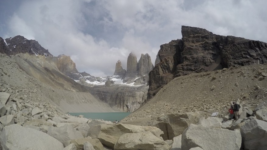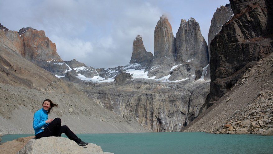 Moram priznati, da sem v sebi kar kričala od veselja in nasmeh se mi je risal na obraz, ko je zadnje minute vzpona tako močno pihalo, da je odpihnilo prav vse goste oblake. Če ne bi pihalo, ne bi videla res ničesar in jutranji obiskovalci so se lahko obrisali pod nosom. Ko si povsem na vrhu, prideš za ovinek in za ogromnimi skalami zagledaš turkizno ledeniško laguno in špičake Torres del Paine, je ves trud povrnjen. Pihalo je za znoreti, takoj sva morala obleči puhovko, kapo in rokavice. Prečudovit prizor narave in zaslužen sendvič s pogledom na gore. Neprecenljivi trenutki in hkrati neizmerno hvaležna naravi, da nama je privoščila razgled in nagrado.