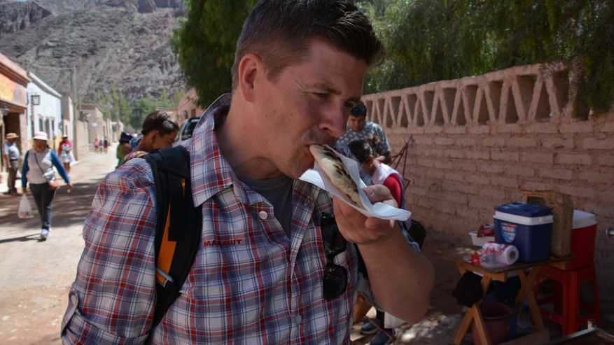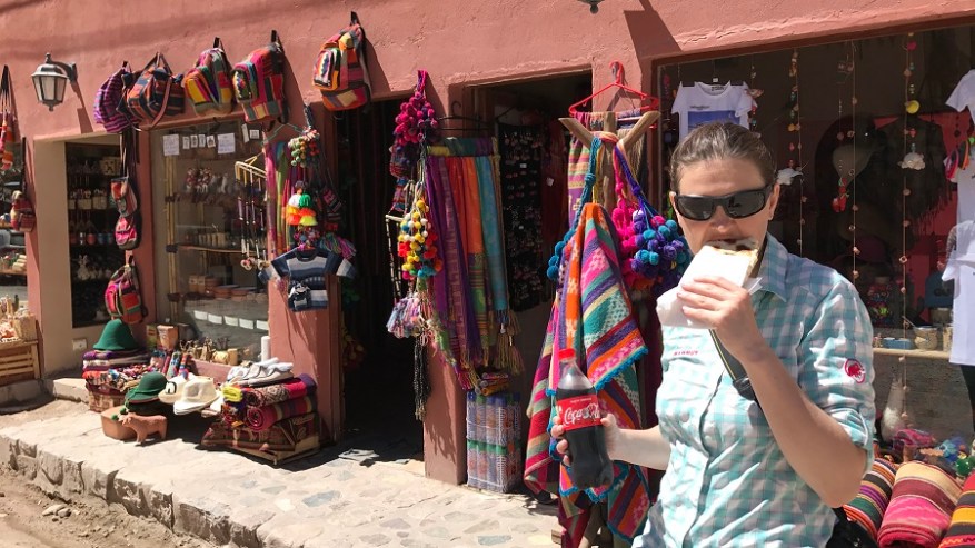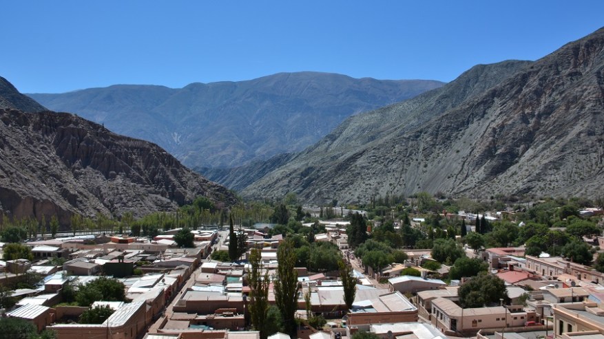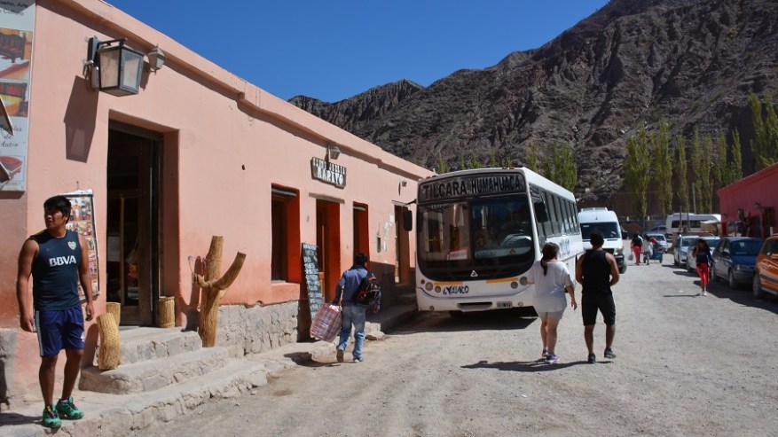Ko sva se spustila s prelaza, sva se na hitro ustavila še v vasi Humahuaca. Zelo podobno Purmamarci, le da je Humahuaca na nadmorski višini 3.000 metrov. Bodite pazljivi, če mislite tukaj prenočiti in prej obvezno naredite nekaj aklimatizacije, da ne boste imeli težav z višinsko boleznijo. Humahuaca ima 8000 prebivalcev in je izhodišče za enodnevne izlete v okolico ali celo čez mejo v Bolivijo do Uyunija. Sprehodila sva se do trga, kjer je postavljana cerkev Iglesia de la Candelaria, ki so jo postavili leta 1641. Na trgu Plaza Gomez so mnoge trgovine, kavarne, restavracije in stojnice s spominki. Midva sva si privoščila tortilje s sirom in paradižnikom na ulici tudi tukaj, ker so res odlične in zelo poceni. Pozno popoldan naju je čakala potem samo še vožnja nazaj v Salto po isti cesti. Potrebovala sva dobre 3 ure do najinega hostla El Relax.