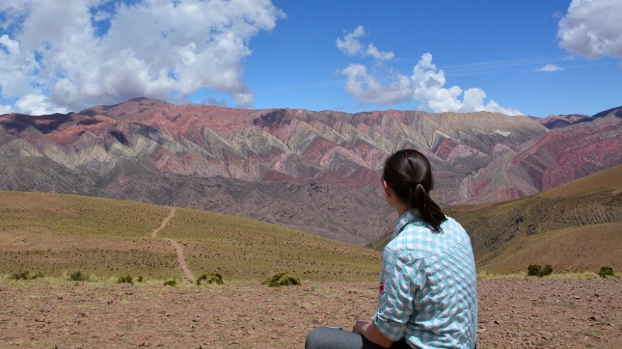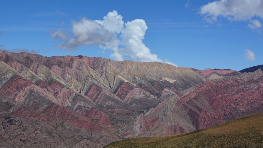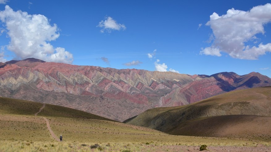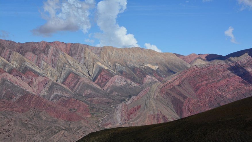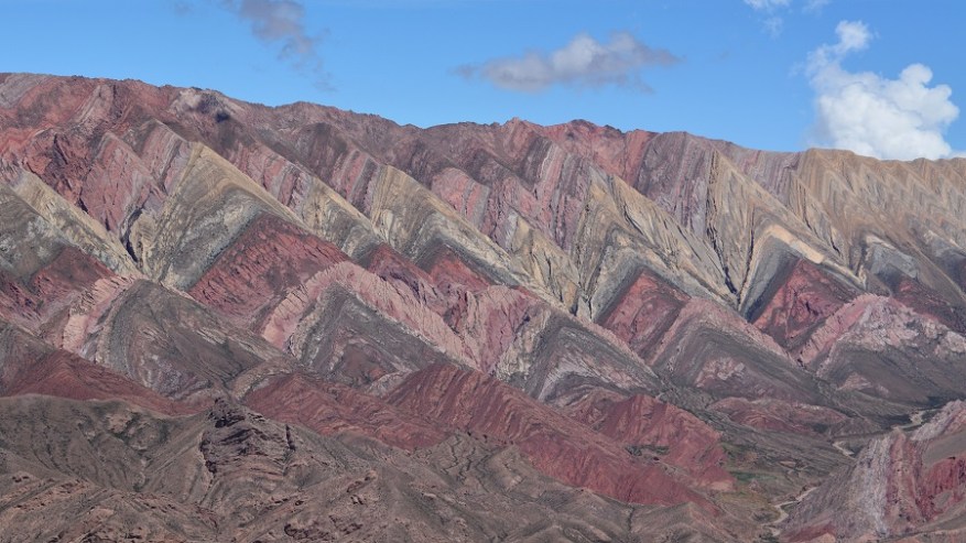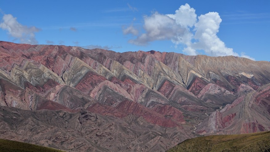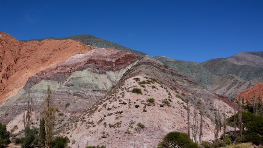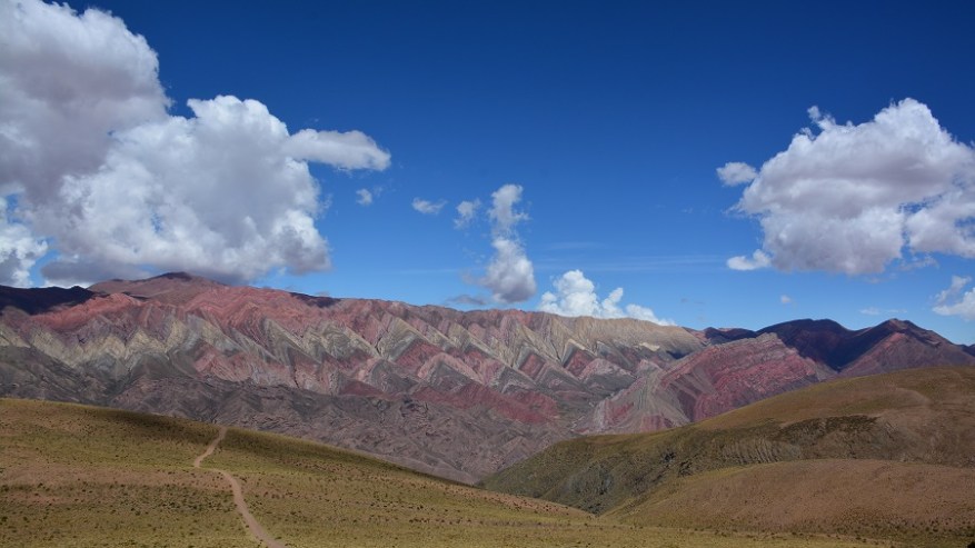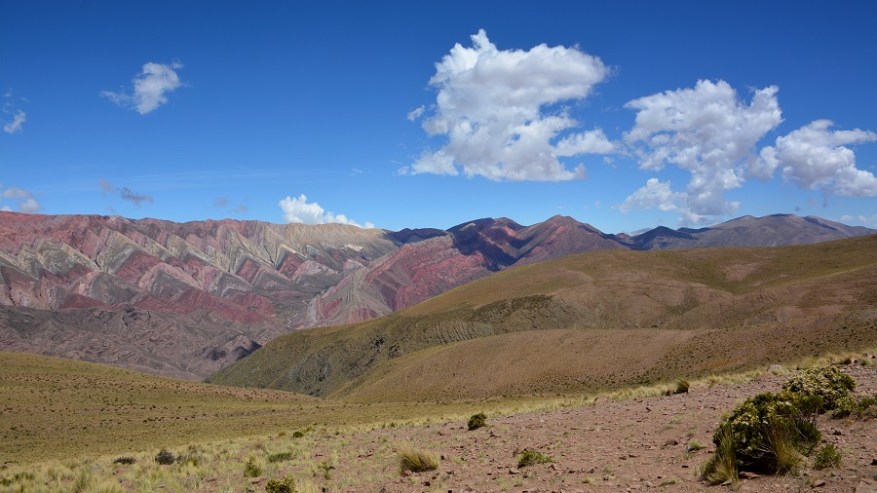 Naslednje postojanke sva se najbolj veselila. Pripeljala sva se do vasi Humahuaca, zavila levo čez most in se po dokaj lepi makadamski cesti začela vzpenjati visoko v hribe. Čakalo naju je 25 kilometrov vožnje po serpentinah do razgledne točke Serrania de Hornocal. Nadnaravni štirinajstbarvni hribi so se bohotili pred nama v lepem sončnem vremenu. Na razgledno točko se morate pripeljati nujno v popoldanskem času, da žarki lepo posijejo na barvne hribe. Zjutraj je sonce pred vami za hribi, zato lepih kontrastnih barv ne boste doživeli. Zelo sem si želela videti barvne hribe. V planu so bili na Kitajskem ali v Peruji, saj niti nisem vedela, da so tudi v Argentini. Izvedela sem le dan poprej in seveda ni bilo druge, kot da jih obiščeva. In zgodil se je eden najlepših popotniških trenutkov in kulis v mojem življenu. Na vrhu na nadmorski višini 4.350 metrih nas je bilo le peščica. Celo nekaj kolesarjev, ki so se pripeljali na vrh. Zrak je redek, a ne povzroča nobenih težav. Nepozabno doživetje. Še dodatna informacija, da ne bo pomote. Fotografije niso čisto nič obdelane – ne svetloba, ne barvni kontrasti, ne senčenje. Nič. Tako je tam v resnici, čeprav sem tudi sama najprej pomislila na fotošopiranje, ko sem videla te fotografije barvnih hribov.
