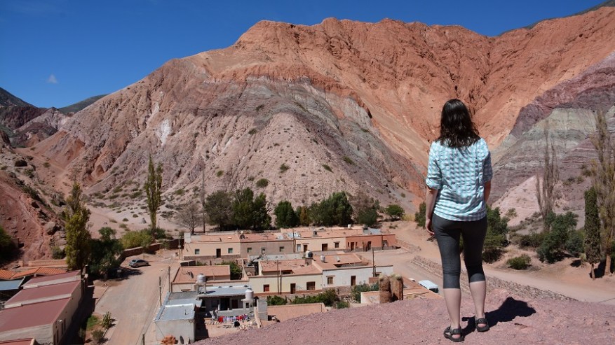 Majhna vasica z le 500 prebivalci je najbolj znana po 7-barvnem hribčku, ki je ob robu vasice. Ime mesta Purmamarca izhaja iz dveh besed – Purma pomeni puščava (angl. desert) in marca pomeni mesto (angl. city). In ime vam pove vse – puščavsko mesto in visoka nadmorska višina. Sonce res močno pripeka. Avto parkirate ob robu vasice, kjer so iz gline narejene majhne in enostavne hiše. Po turistični ulici kar mrgoli prodajalcev lokalnih izdelkov. Še najbolj so mi v oči padle prekrasne pisane tkanine. Seveda sva komaj čakala na najino težko pričakovano doživetje. Nekaj korakov in že ste na razgledni točki, kjer vidite vasico in čudovito delo mati narave. Sedem barvni hrib se bohoti tik pred vami, v daljavi pa lahko vidite tudi celo paleto barvnih hribov. Ostala sem brez besed in res samo uživala.