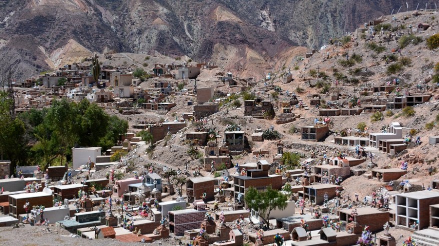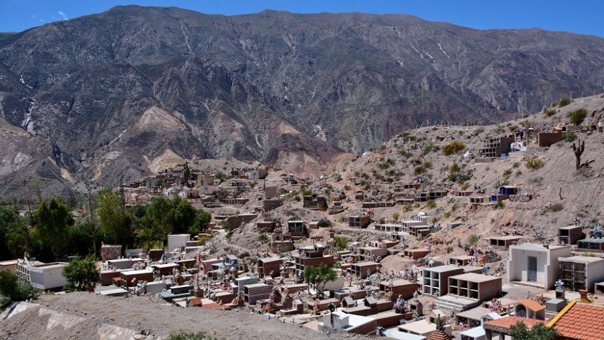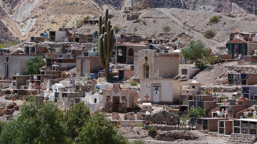 Ko sva se vozila naprej proti Tilcari, sva ob cesti videla precej še manjših vasic in ob njih seveda tudi izjemno drugačna in zanimiva pokopališča. Na pokopališčih vedno rastejo tudi kaktusi, saj je bila v preteklosti navada, da so za vsakega pokojnega posadili kaktus. Ogromno cvetja in dodatkov daje pokopališču pisan videz, kar je še posebej lepo. Od daleč pokopališče izgleda kot mini blokovsko naselje.