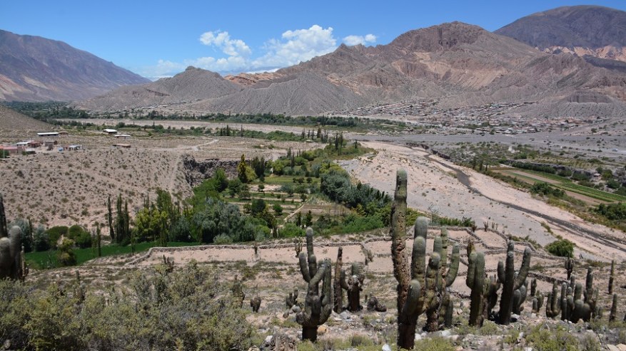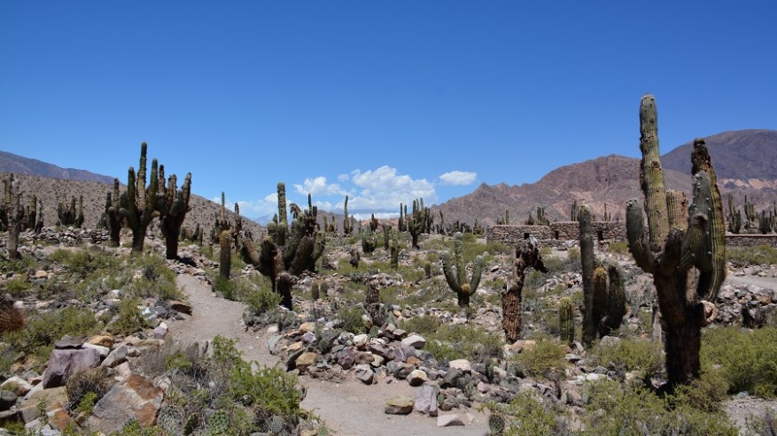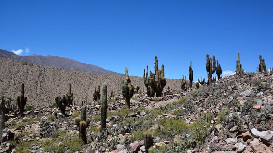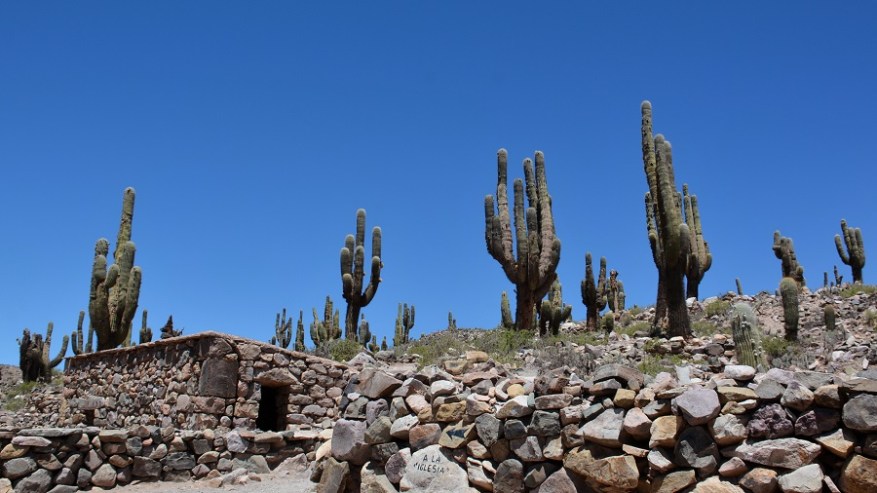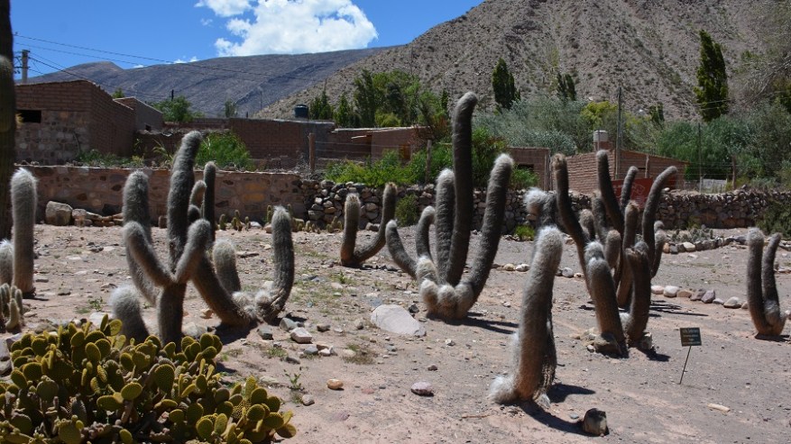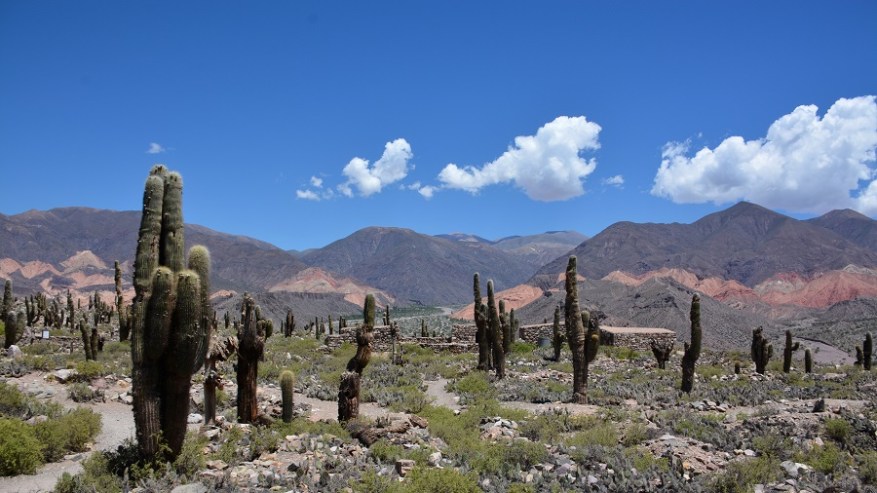 Najina naslednja postajanka je bila vas Tilcara s hribom Pucara. Skozi puščavsko vas sva se pripeljala do hriba, na katerem so vidni ostanki starodavne utrdbe iz predkolumbijske dobe, ki segajo v čas od 11. do 15. stoletja. Strateška lega na najvišjem hribu je dajala vasi zaščito pred napadalci, še danes je pa to krasna lega za čudoviti razgled v dolino in na sosednje pisane hribe ter kanjone. Na Pucari je posajenih več 100 ogromnih kaktusov, saj so v preteklosti za vsako izgubljeno dušo posadili kaktus. Sprehodila sva se med ogromnimi kaktusi in ostanki utrdbe do najvišje točke in se čudila prekrasni pokrajini ter razgledu. Ob vhodu je tudi botanični vrt, kjer so na ogled mnoge vrste kaktusov. Fascinantno in kičasto lepo.