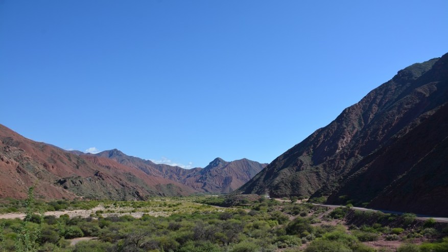 Z najetim avtomobilom sva se odpravila tokrat proti jugu do mesta Cafayate. Sicer sva najprej ciljala na krožno pot, a sva morala avto nujno oddati do 20. ure, ob polnoči pa sva imela že nočni avtobus za Čile, zato nisva smela zamuditi. Če bi imela še eno noč v Salti, bi se odpravila na krožno pot skozi Cachi, ki je menda fantastična. Vozila sva se naprej skozi več manjših zelo urejenih mest in vasi, ki so počasi začele izginjati v divji pokrajini. Kanjoni, pisani hribi in nasadi tobaka ter tu in tam že kakšen vinograd. Tobak ima ogromne živo rumene liste, ki so jih tudi kmetje pobirali za sušenje. Meni izredno zanimivo, saj sem ga videla prvič v življenju v obliki rastline. Med potjo sva se ustavila na razgledni točki pri treh križih (Mirador Tres Curces), kjer je čudovit razgled na kanjon, reko in pisano obarvane hribe. Prava puščavska divjina.