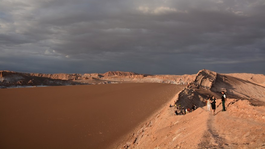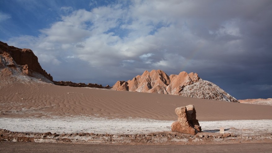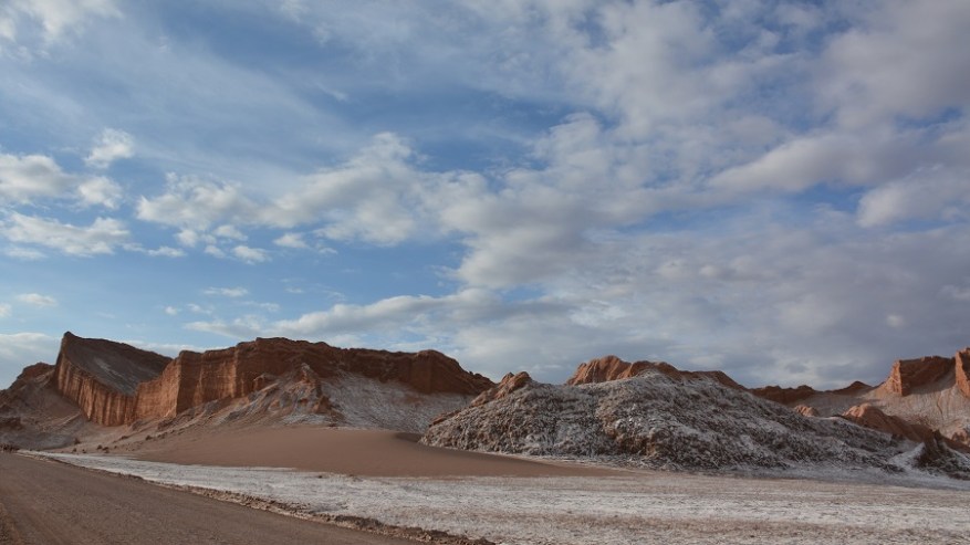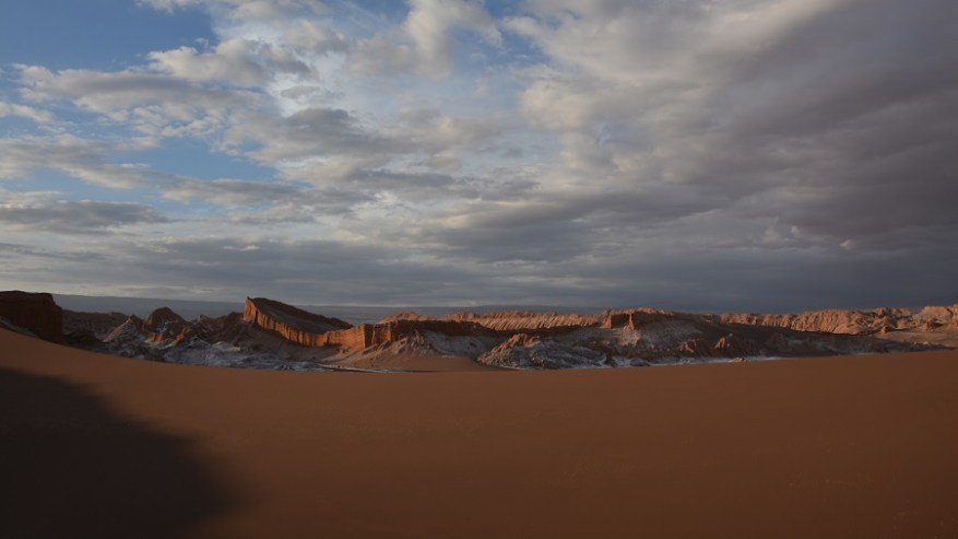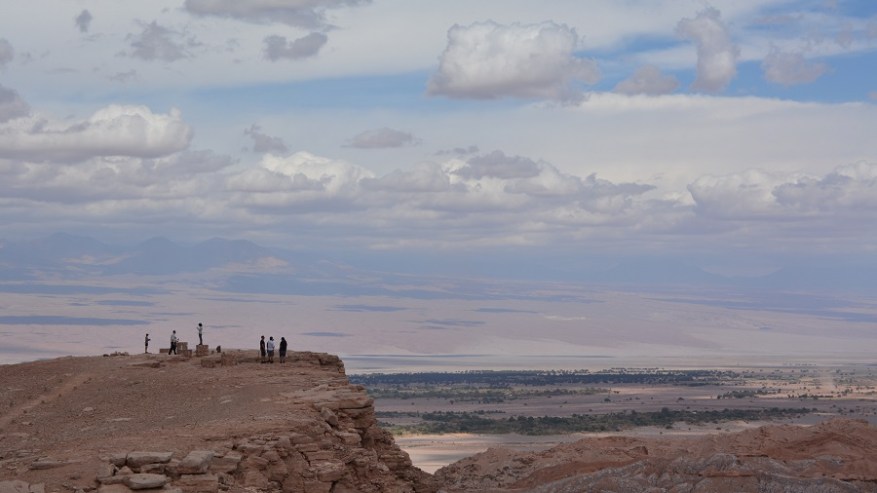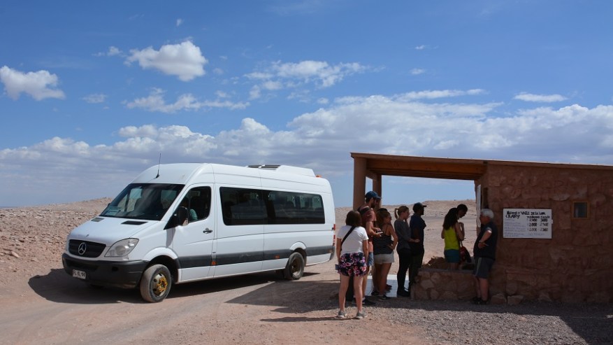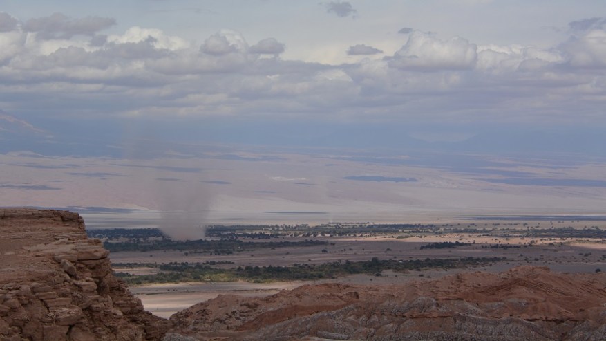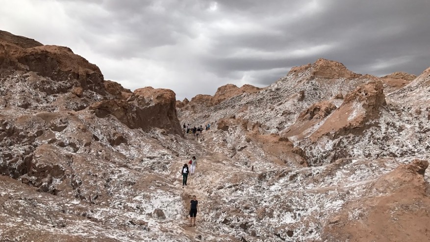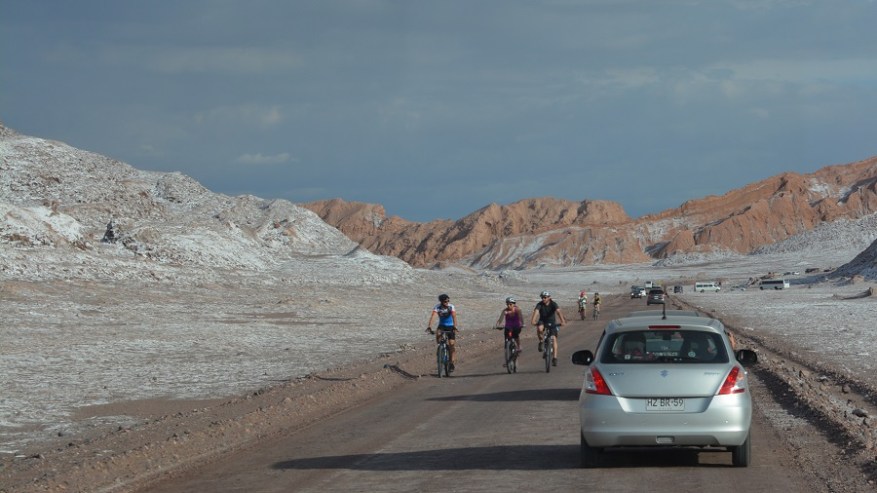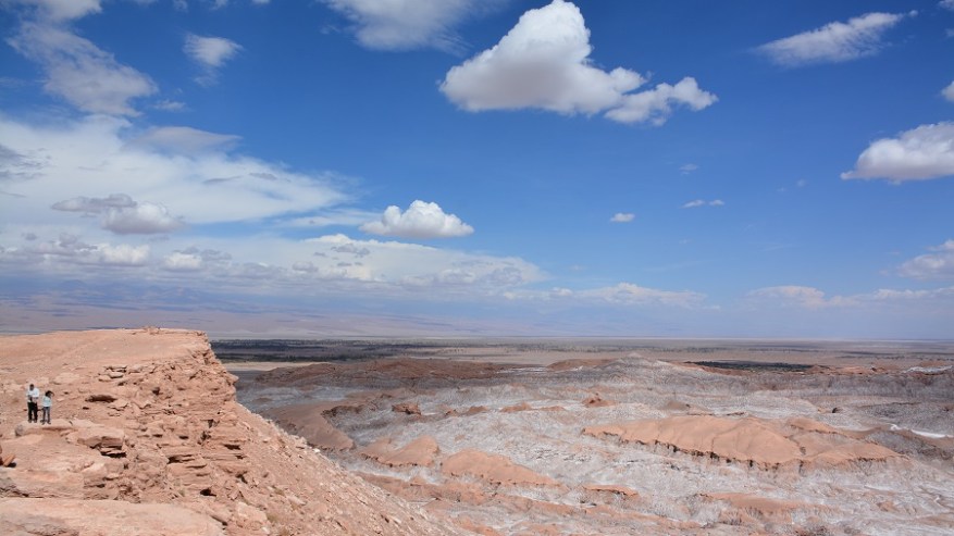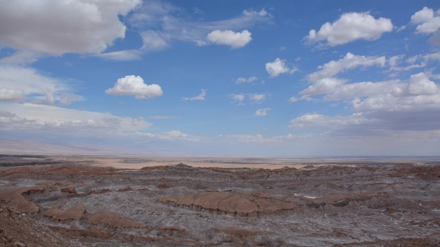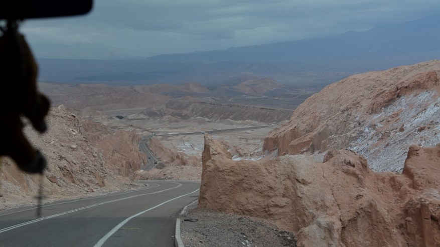Z lokalno agencijo Cruz Andina sva si že prejšnji dan organizirala in plačala popoldanski izlet v dolino Valle de la Luna, ki je iz mesta oddaljena 12 kilometrov. Naj vam na misel ne pride, da bi se tja odpravili s kolesom. Tako priporočajo nekateri popotniki, a vam povem, da je vsega skupaj za prekolesariti po hriboviti cesti 50 kilometrov. Na izletu smo sicer videli kolesarje, a so umirali od naporov. Hkrati vas vsak avtomobil prijetno zapraši, zvečer je mrzlo in piha. No, ni ga denarja za takšne podvige. Nas je agencija ob 16. uri lepo naložila v mini kombi. Ogledali smo si nekaj zanimivih točk, začeli pa smo na vrhu doline na prekrasni razgledni točki. Valle de la Luna ali Moon Valley se nahaja v puščavi Atacama. Puščava Atacama velja za eno najbolj suhih pokrajin na svetu, saj nekateri deli pokrajine niso prejeli niti kaplje dežja že več 100 let. Vodička nam je povedala, da običajno dežuje v drugih delih okrog Atacame nekje od enega do deset dni na leto v januarju, tukaj pa seveda niti kaplje. Dolina ima različne kamnite in peščene formacije, ki sta jih izrezljala veter in voda. Impresivno paleto barv in tekstur lahko primerjamo s površjem na Luni ali Marsu, zato tudi takšno ime doline. Po celotni dolini je videti tudi mnogo soli, saj so se jezera posušila in za seboj pustila kristalizirano sol. Vse to je danes vidno kot bela površina. Dolina je del nacionalnega parka Reserva Nacional los Flamencos, ki je bil zaščiten že leta 1982. Temperatura zelo niha med dnevom in nočjo. Povprečna temperatura pa je nekje med 16 do 24 stopinj Celzija.