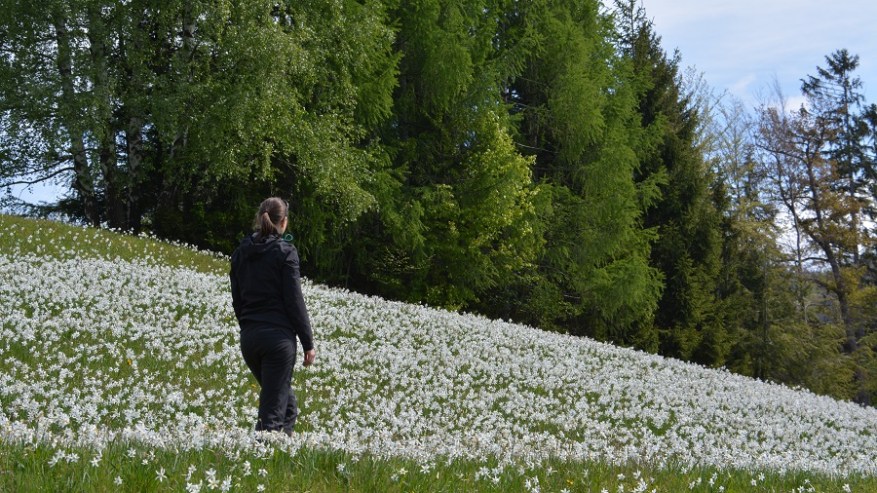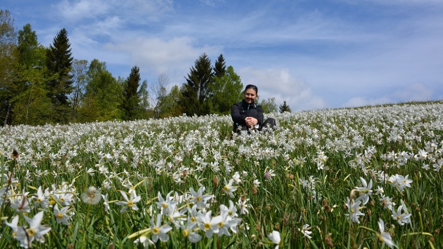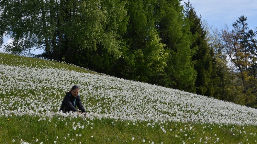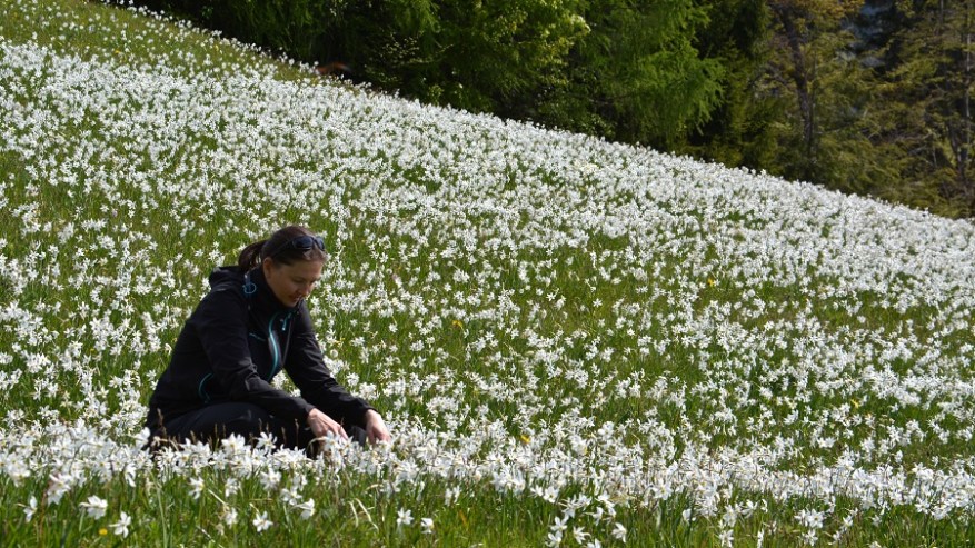 Danes sva se dopoldan na hitro odpravila do vasice Plavški rovt, saj sem te dni zasledila, da je cvetenje narcis ali ključavnic v polnem zamahu. Le dobre tri kilometre nad Jesenicami se nahaja majhna vas, na nadmorski višini 750 metrov. Ko parkirate svojega jeklenega konjička na majhnem parkirišču, lahko na levi strani že opazite bele travnike cvetočih narcis. Nobenega posebnega napora ni potrebnega, da se sprehodite med tisočerimi narcisami ter se predajate njihovemu nežnemu vonju. Mati narava nas na tem mestu dobesedno poboža. Trganje in uničevanje je strogo prepovedano, saj gre za zaščiteno rastlino. Med ogledovanjem je seveda potrebno narediti lepe fotografije za spomin, a z veliko mero previdnosti, da ne uničite niti ene samcate narcise. Mnogi obiskovalci se tega tudi danes niso držali in veselo trgali cele šopke, ter za dobro fotografijo pomendrali pol travnika. Žalostno! Sicer pa ne odlašajte z obiskom čudovite pokrajine, saj bodo narcise cvetele v polnem zamahu verjetno le še kakšen teden. Na višjih pobočjih pa jih boste našli seveda tudi še do konca maja.