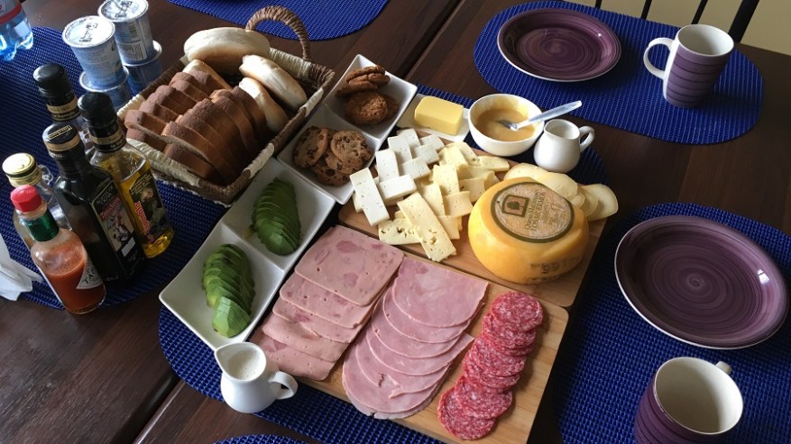 Zajtrke sva večinoma imela že v ceni prenočišča, sva jih pa morala največkrat zelo na hitro pojesti oziroma vzeti kakšno malenkost s seboj, saj so bili avtobusi in odhodi na letališča vedno zelo zgodnji. Nekatera prenočišča so se temu res prilagodila in stregla zajtrk že od šestih naprej oziroma tudi po želji, pri nekaterih pa to ni bilo mogoče. Sicer pa zelo standardna ponudba – sadje, jajčka, med, marmelada, maslo, sir, avokado, čaj, kava, voda, sokovi. Skratka odlično.