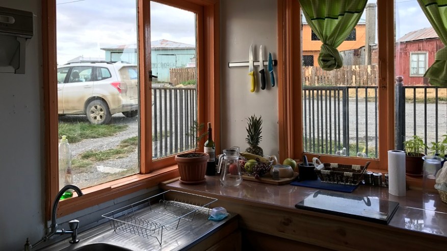 Ko sva prispela v Punta Arenas in naju je taksi pustil pred to razbitino, sem mu rekla, da se je zmotil. A se ni. Hiša Hostala Dona Irma jezuskristus. Ampak tam so vse hiše takšne. Seveda je razmerje vrednost za denar adijo pamet. A to je konec sveta ali Patagonija. Nore cene za nas. Pri Irmi je bilo na koncu super. Teta Irma ni govorila angleško niti besede, na steni je bil zemljevid otoka Brač. Lokacija oddaljena nekaj 100 metrov od centra, tako da lahko greste peš v mesto, ogrevanje je delalo, voda v tušu odlična, zajtrk čisto ok.