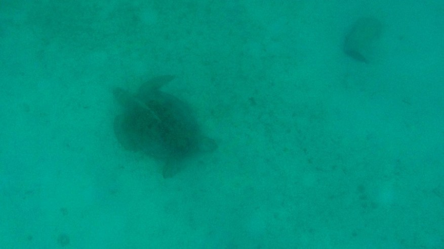 Za konec smo se ustavili še v zalivu, kjer so morske želve. Povsem na dnu morja so jedle travo, potem pa vsakih nekaj minut priplavale na površje po zrak. Ena je priplavala direktno vame in sem se ji komaj umaknila.