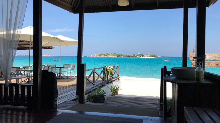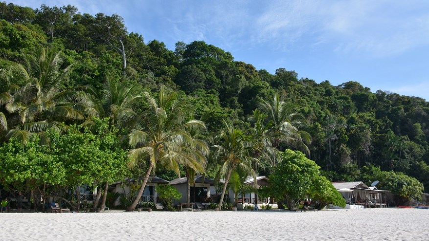 Ja, ko smo se približevali najinemu mini resortu s privatno plažo, se mi je smejalo do ušes. Čoln vas namreč pelje do vašega hotela in midva sva bila na vrsti prva. Ko sem zagledala ta zaliv z belo plažo in turkiznim morjem. Skoraj sem res padla s čolna. Vsi ostali pa tudi, ker so naju samo vprašali: “A tukaj bosta vidva? A res? A tukaj?”. Ja, smejalo se mi je do ušes in še kam dlje. S čolna vas pospremijo kar v vodo, ker nimajo niti nobenega pomola. Sicer je zraven en velik pomol, a ta je namenjen za tiste, ki pridejo čez dan na snorklanje v sosednji zaliv. A tudi teh nisva videla, ker je popolnoma na drugi strani plaža. Wisana Village je mini družinski resort s privatno plažo in lahko sprejme le 36 gostov naenkrat. Ko sva bila midva, nas je bilo le za 3 hišice, tako da je bilo popolnoma mirno. Še ti gostje so šli na celodnevne izlete, tako da sva imela celo plažo samo zase. Dva dni. Midva sva se tokrat odrekla snorklanju, saj sva si želela samo kopanja in uživanja. Z nama so se v morju kopale tudi velike morske želve, tako da dolgčas nama ni bilo. Na levi strani plaže pa je tudi koralni greben, ki nudi prečudovito snorklanje. Midva sva se usidrala in bilo je fantastično. V ceno imate vključene tudi vse tri obroke in vso pijačo, ker na plaži ni nič (alkohola v resortu ne točijo). Peš tudi ne morete nikamor, lahko pa vas vodni taksi zapelje do druge plaže, ki ima restavracije in trgovine. Morje je bilo čudovito, čisto, brez tokov, brez ene smeti, skratka rajsko. Plaža s čudovito drobno mleto belo mivko in na plaži veliko sence. Raj na zemlji.
