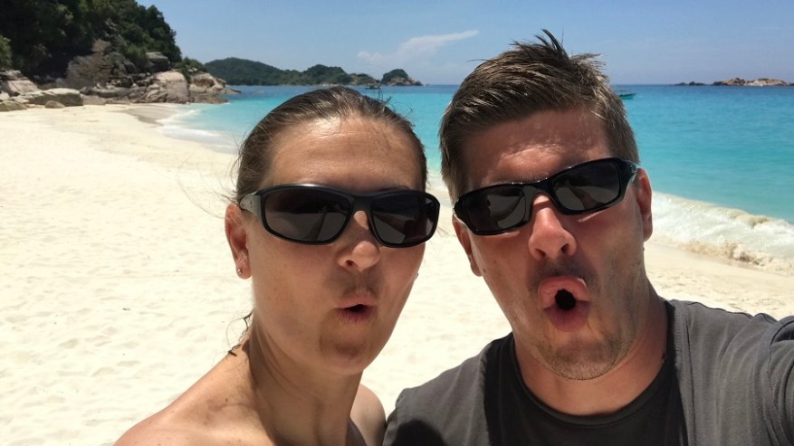 Ko sem še doma pred meseci načrtovala potovanje, sem najprej rezervirala vseh 5 nočitev na Perhentianih v Tuna Bay Resortu. Nato se sprehajam po internetu in čisto po naključju preberem nekaj čudovitih stavkov o skoraj sosednjem otoku Redang. In seveda mi ni dalo miru, da ne bi rezervacije na Perhentianih skrajšala za 2 noči in rezervirala apartma v manjšem družinskem resortu s privatno plažo na otoku Redang. Težko sva pričakovala odhod čolna s Tuna Baya proti sanjskemu Redangu. Eno uro vožnje in prispemo v zaliv z Wisano. Ostali potniki so samo buljili in rekli: “A tukaj sta vidva?” Ja, tudi midva sva kar začudeno pogledala. Rajsko in sanjsko. Morje tako turkizne barve, da sem skoraj padla s čolna, in plaža tako bele barve, da so bolele oči. Vam povem: “To je zagotovo kraj, kamor se bova vračala na dopust.”