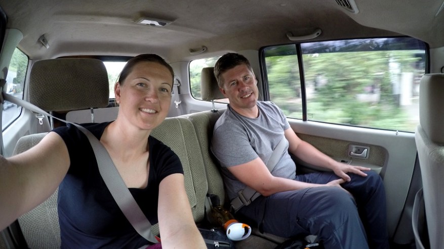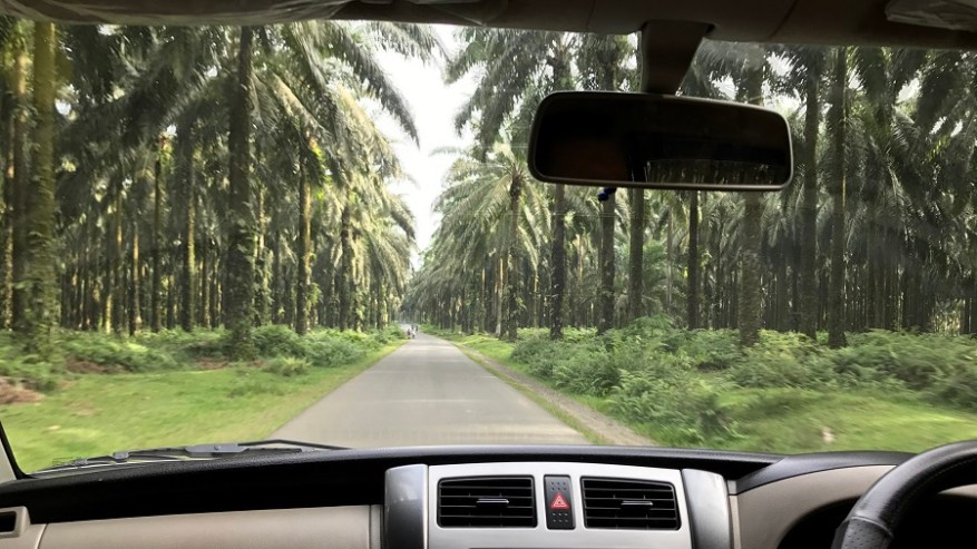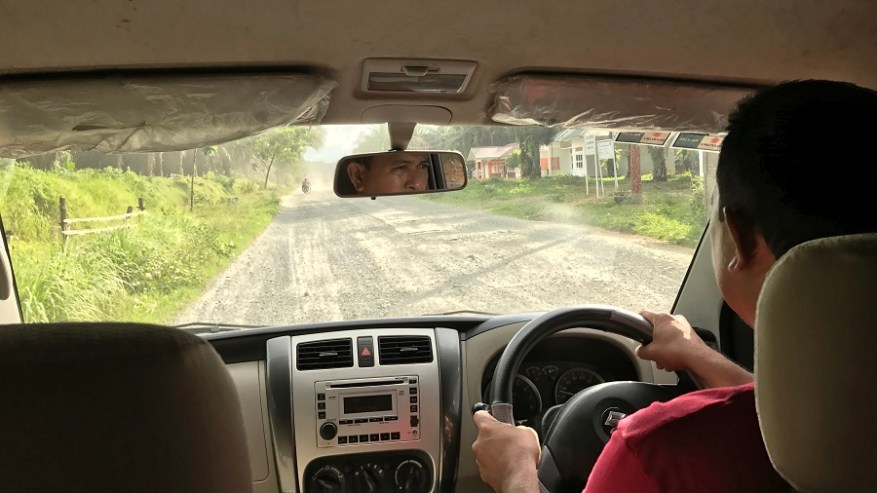 Na Sumatri se lahko normalno prevažate tudi z lokalnimi avtobusi, a najhitreje in seveda najudobneje si je najeti svojega šoferja. Naju je počakal na letališču in odpeljali smo se v Bukit Lawang. Kilometrov je res samo 121, je pa strašna gneča na cesti in cesta je v katastrofalnem stanju. Ne bi verjela, če ne bi videla. Do Medana smo prispeli hitro, zamenjali celo ob cesti nekaj denarja, nato pa v Medanu pristali v strašni gneči. Eno uro smo potrebovali za nekaj kilometrov. Sledila je vožnja skozi vasi in manjše kraje proti Bukit Lawangu. Na cesti je ogromno prometa, saj je to edina cesta za celo regijo. Tovornjaki vozijo vse blago na isti regionalni cesti. Hkrati pa cesta tako zdelana, da je včasih sicer bil asfalt, danes pa so samo še globoke luknje. Hkrati pa bodejo v oči umetni nasadi palm, ki prinašajo palmovo olje multinacionalkam. Tropski gozd so namreč že pred desetletji uničili in umetno nasadili palme. Na celotni poti do Bukit Lawanga ni ostalo nič prvotnega tropskega gozda, kar je res zaskrbljujoče.