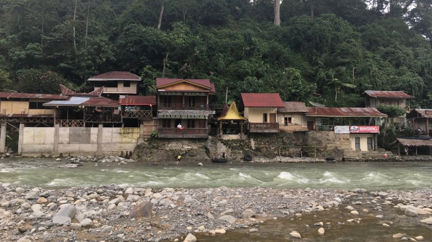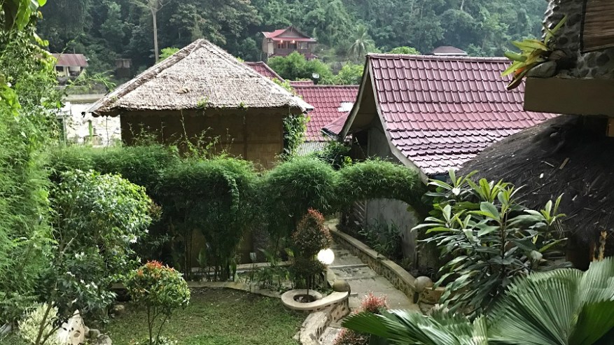 V Bukit Lawang smo prispeli okrog štirih popoldan. Do najinega Guesthousa sva morala po zdelanem visečem mostu čez deročo reko. In to z nahrbtniki. Jojmene. A Junia Gueshouse je prekrasna namestitev ob reki, s krasnim tropskim vrtom, odlično restavracijo in super prijaznimi zaposlenimi. Uspela sva le v miru pojesti kosilo, se dogovoriti za treking za naslednji dan. Ko sva želela malce peš naokoli, pa je začelo grmeti in naenkrat je bila takšna nevihta, da je bilo prav strašno. Več ur je neusmiljeno deževalo, tako da sva lepo počivala v najini leseni hišici z razgledom. Cene pa res smešno nizke. Že dolgo, dolgo se nisva tako poceni prehranjevala in spala. Super občutek.