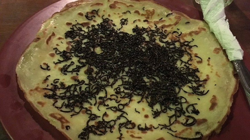 - večerja (nudli, riž, Coca Cola, palačinke z nutelo, palačinka z banano, voda) = 94.000 IDR (8 EUR)