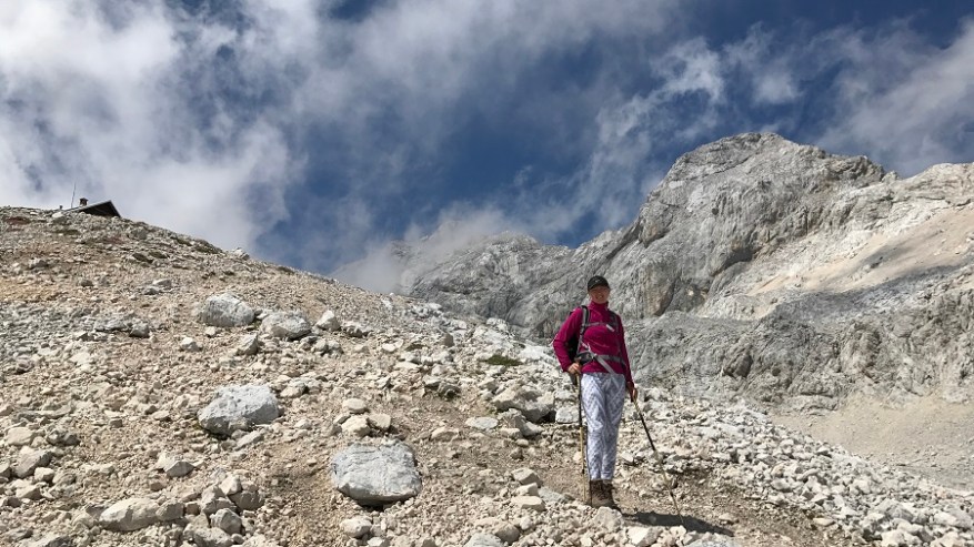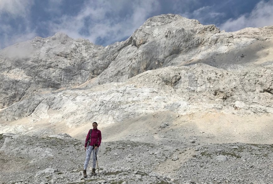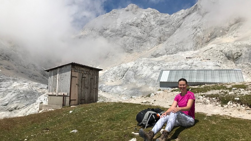Ker sva jo hitro ucvrla naprej, sva se izognila vsem skupinam in gneči. Praktično sva bila skoraj sama do vrha. Nekaj klinov in vrvi, a nič hudega. Dvakrat je potrebno premagati nekaj korakov med klini in po zavarovani poti. Sicer pa dokaj strmo, pot je kamnita, a izredno lepa. Vseskozi sem upala na razgled in sonce na vrhu pri koči Planika. Slabo uro pred vrhom vam pot lepšajo tudi naše prekrasne rožice Planike, ki so pa res mini mini. Drobne in kosmate. Po dveh urah sva prisopihala na cilj. Dom Planika tik pod Triglavom je na nadmorski višini 2.408 m. Dobila sva čudovito darilo – sončen in jasen pogled na Triglav povsem od blizu. V dolino – nobenega pogleda. Pri domu na desetine ovac, ki ti hočejo na vsak način pojesti več kot zasluženo kosilo. Sendvič z najlepšim razgledom na svetu. Do Triglava je od tukaj samo še uro in pol hoda, a sva bila prepozna in tudi nisva imela opreme in takšnega načrta. Krasno!