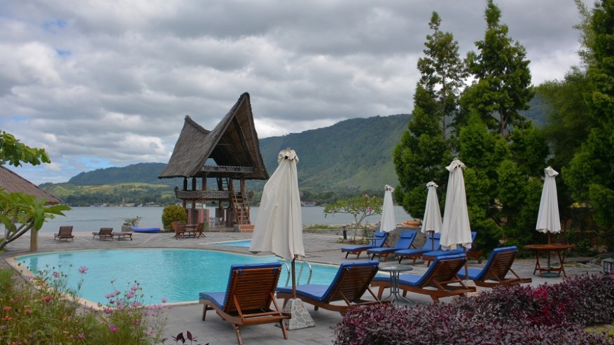 Šele zjutraj sva praktično videla, kje se nahajava, saj sva včeraj prispela v trdi temi. Po obilnem zajtrku na hotelskem vrtu sva si najela skuter in se odpravila na celodnevno raziskovanje otoka Samosir. Jezero Toba (Danau Toba) je veliko naravno jezero, ki je nastalo z ogromnim vulkanskim izbruhom. Dolgo je približno 100 km in široko 30 km. Njegova globina je tudi do 505 metrov in leži na nadmorski višini 900 metrov. Je največje jezero v Indoneziji in tudi največje vulkansko jezero na svetu. Mega vulkanski izbruh je zagotovo spremenil podnebje, saj velja za največji znani eksplozivni izbruh na Zemlji v zadnjih 25 mio letih. Po nekaterih teorijah je ta izbruh uničil večino prebivalstva in tako spremenil gensko sestavo človeka. Njegov izbruh bi naj vplival tudi na podnebje in sestavo tal vzhodne Afrike.