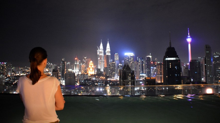 Zgodaj zjutraj sva se s taksijem odpeljala do povsem novega letališče v Medanu, od koder sva z Malaysia Airlines poletela proti eno uro oddaljenem Kuala Lumpurju. Ker je bila na letališču gneča, smo morali narediti nad morjem dodaten krog. Na imigraciji sva tokrat čakala le dobre pol ure, kar je za Kuala Lumpur super. Vnaprej sva si organizirala zasebni prevoz do najinega AirBnB stanovanja v stanovanjskem kompleksu Regalia. Na vrhu stolpnice je velik bazen, od koder je čudoviti pogled na mesto in Petronasova dvojčka. Neznosna vlaga in vročina sta naju prisilili v opoldanski obisk prijetno ohlajenega trgovinskega kompleksa. Ko sva se okrog štirih le odpravila proti dvojčkoma, se je utrgalo nebo. Na poti naju je ujela strašna tropska nevihta, voda je zalila vse ceste, midva pa sva obtičala v eni ulici. K sreči je po treh urah dež ponehal, zato sva kljub vsemu lahko zvečer pasla oči na bleščečih Petronasovih dvojčkih.