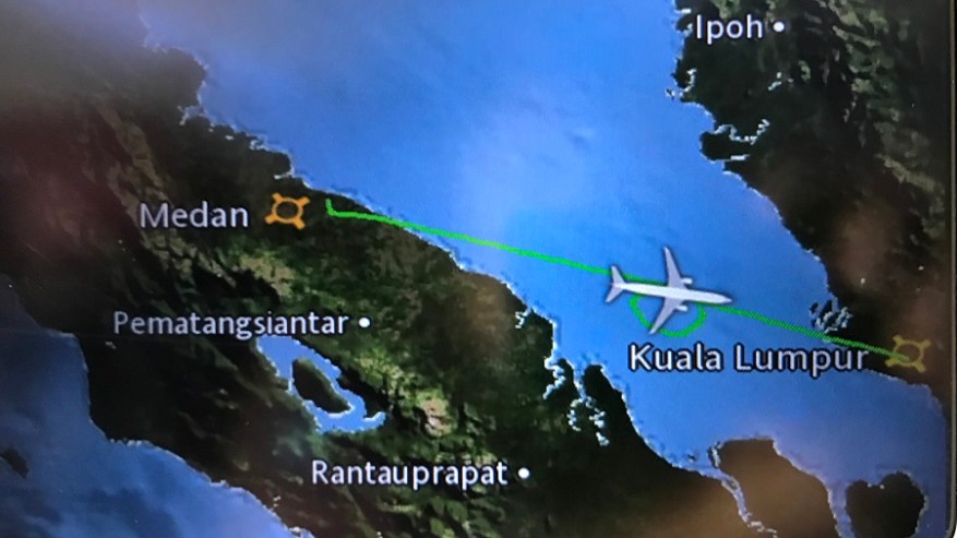 Ob šestih zjutraj sva si naročila taksi do letališča Kualanamu v Medanu. Letališče je precej oddaljeno in čez dan so precejšnje gneče, zato si je potrebno planirati dovolj časa. Ker sva se peljala zjutraj, je bilo na cesti k sreči vse v redu in sva prispela pravočasno. Letališče je povsem novo in ogromno, hkrati pa tudi po novem mednarodno, tako da Qatar že ponuja v Medan direktne lete od tega leta. Na letališču sva uredila vse potrebno in si privoščila zajtrk. Proti Kuala Lumpurju smo poleteli povsem točno, a ker je bila gneča na letališču v Kuala Lumpurju, smo morali nad morjem narediti dodaten krog. V misli se mi je prikradla novica o izgubljenem letalu Malaysia Airlines izpred leta dni, ko so zavili v obratno smer in jih nikoli več niso našli. Pristali smo točno in zopet naju je čakal dolgotrajen imigracijski postopek. Tokrat sva v vrsti za vstop v Malezijo čakala le dobre pol ure.