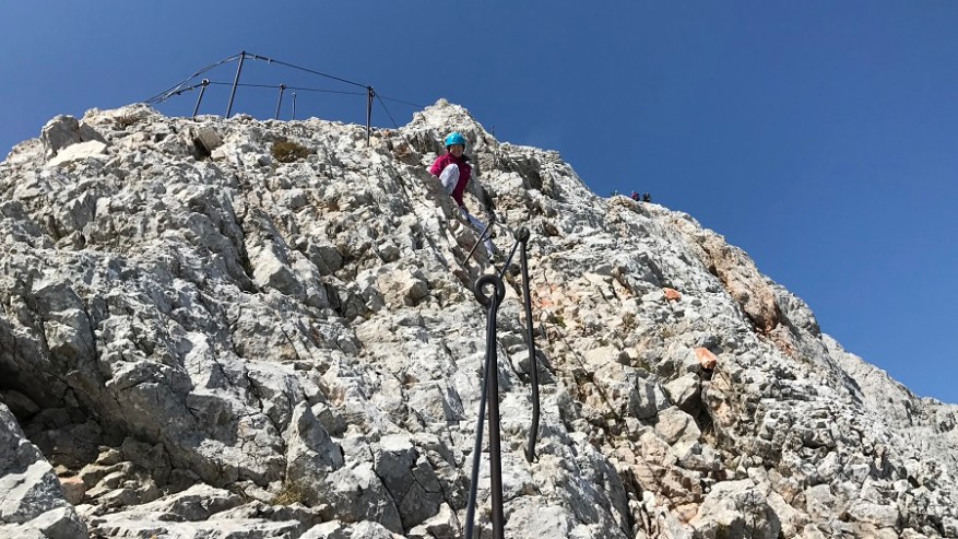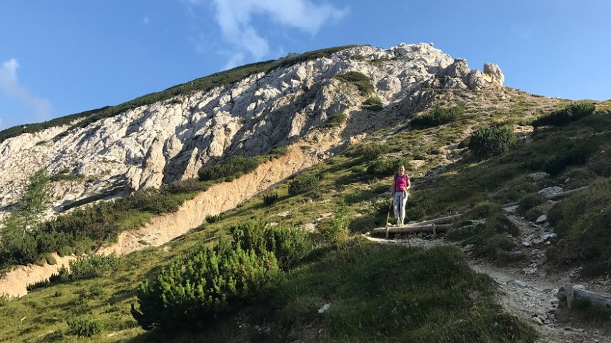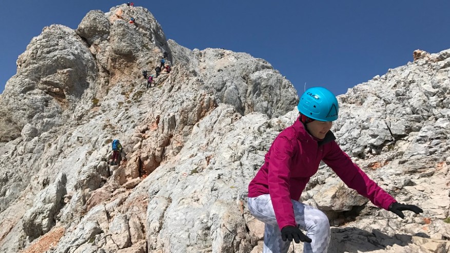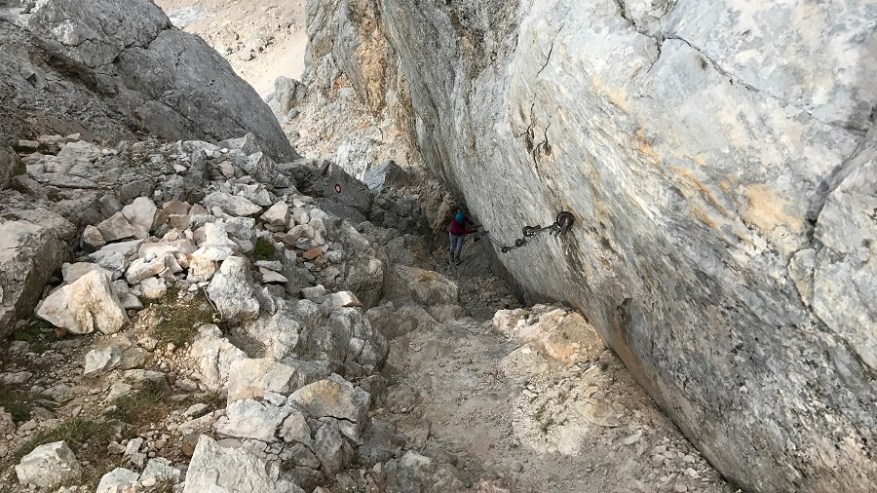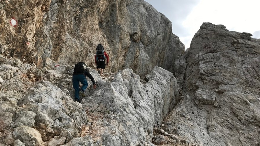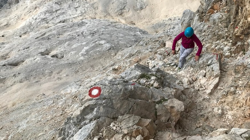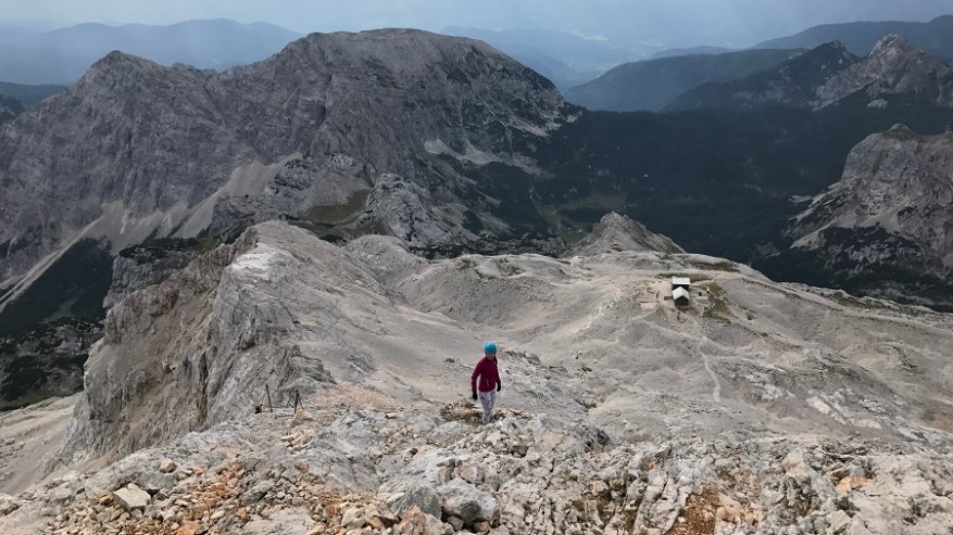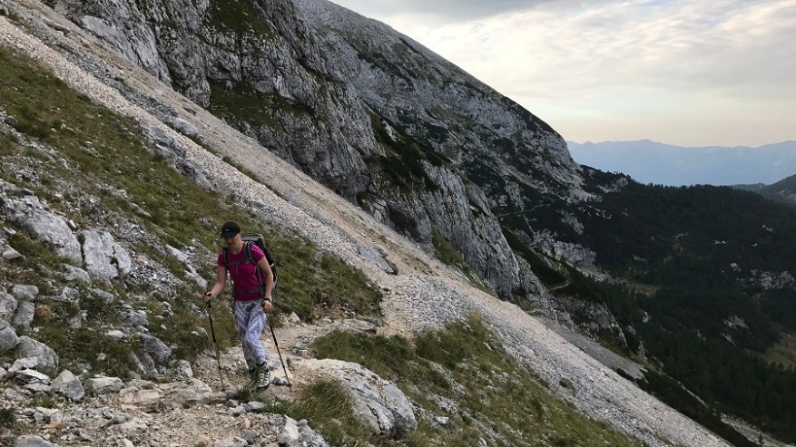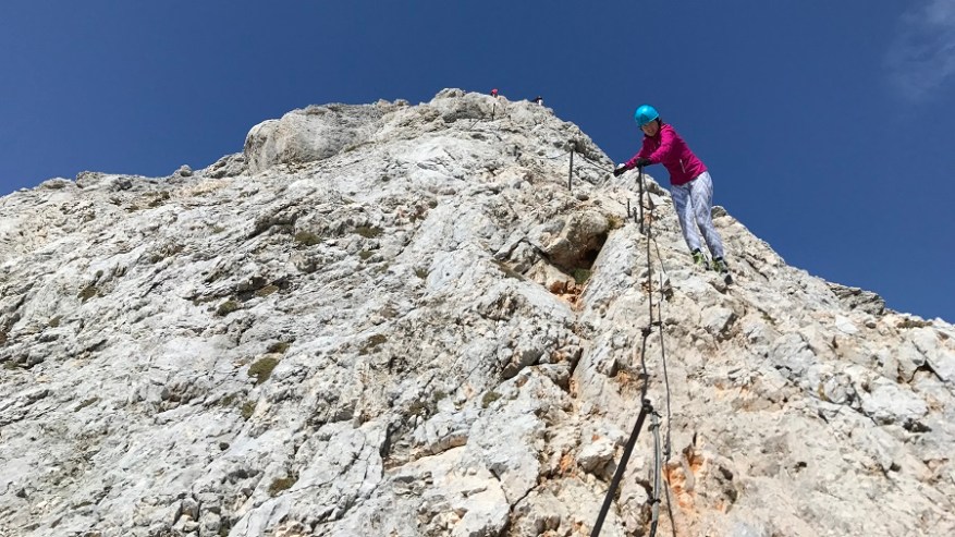 Ko si enkrat gor, si samo na polovici poti. Čaka te še najtežji del. Pot nazaj. Po pol ure počitka na vrhu, sva se odpravila nazaj po isti poti. Nekateri izberejo krožno pot čez Škrbino, a midva sva šla po enaki. Vzpenjalo se je kar nekaj pohodnikov, zato smo se malce več morali umikati. A vrh je bil osvojen in volje je bilo dovolj. Tudi za nazaj sva potrebovala eno uro in pol, saj je spust prav tako zelo zahteven in moraš biti dovolj previden, da ne zgrmiš v prepad. Rokavice in še enkrat rokavice. Ne predstavljam si vzpona brez njih. Sicer pa čudovito. Le jeklenic in klinov nekaj časa ne želim videti.