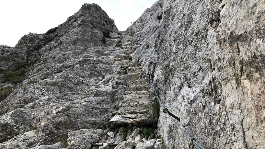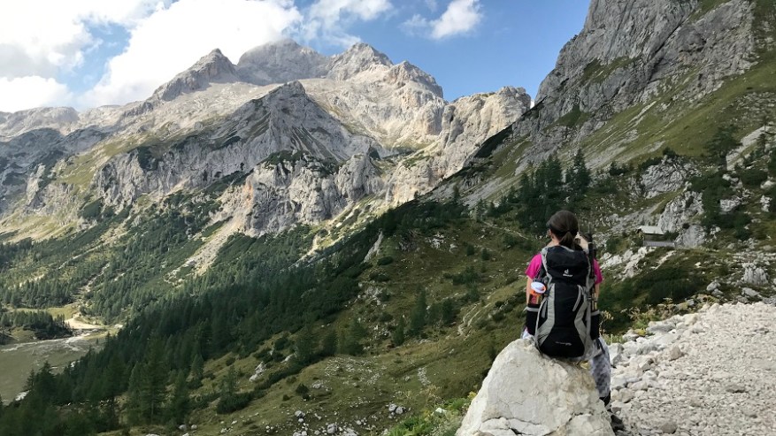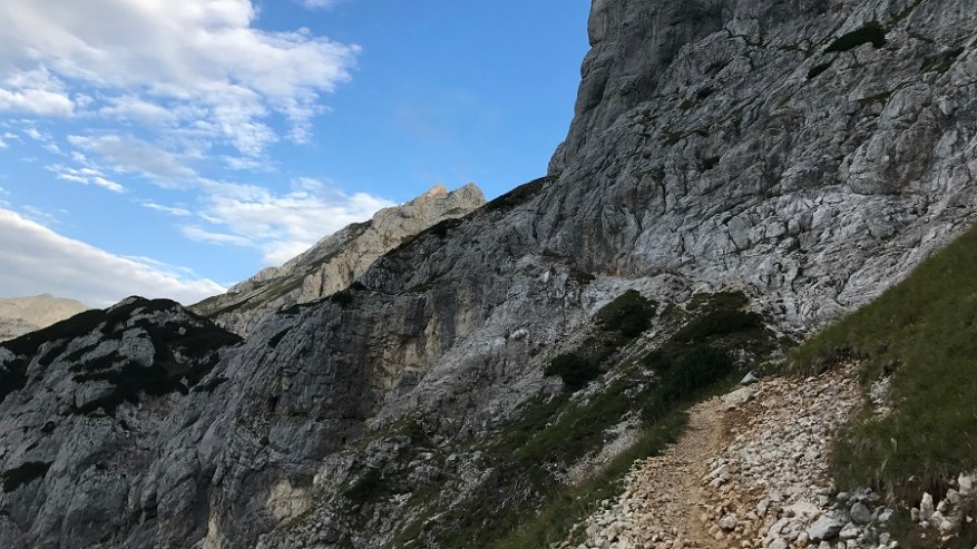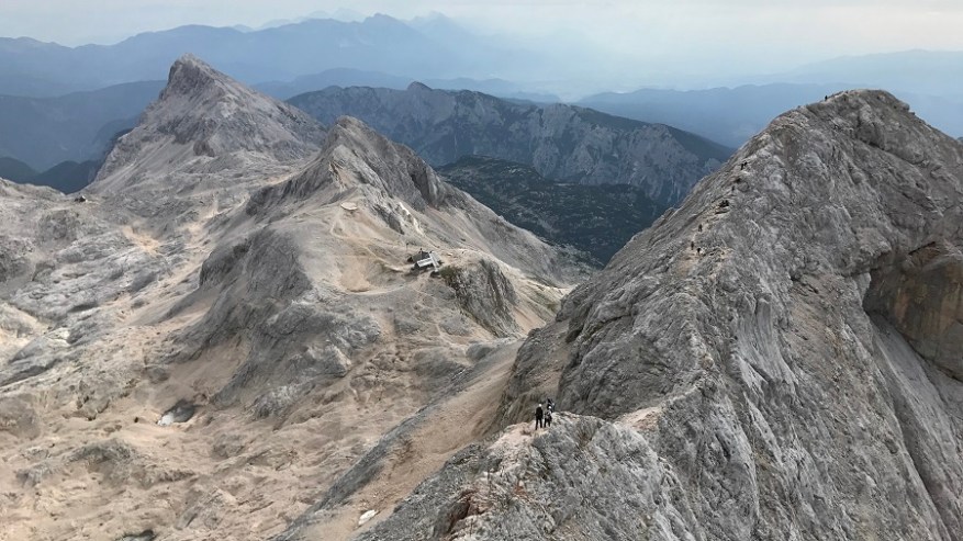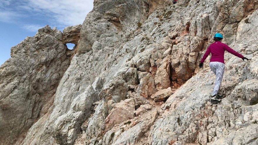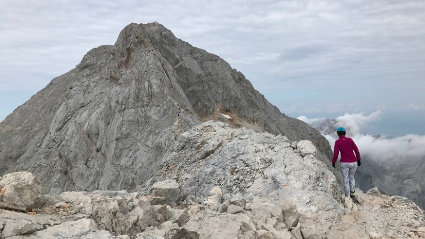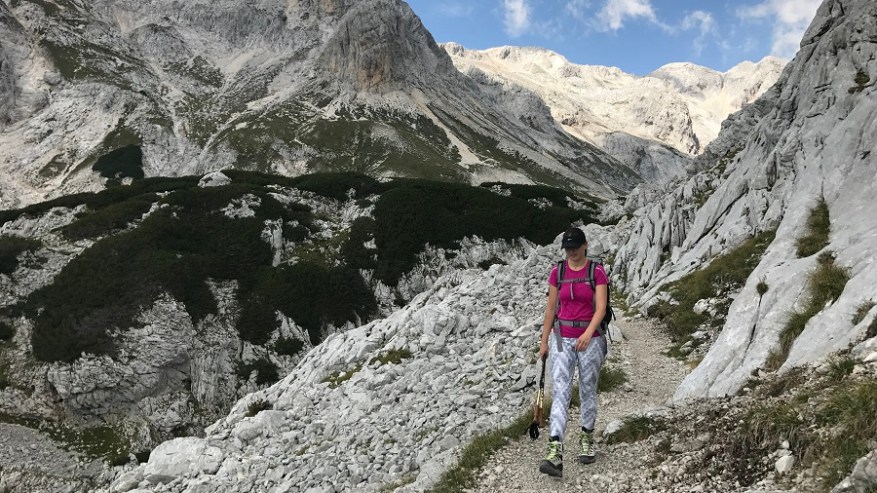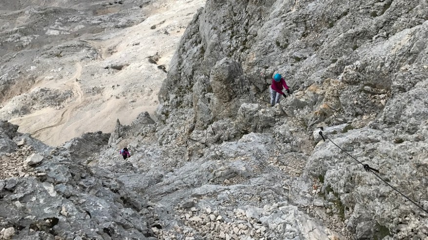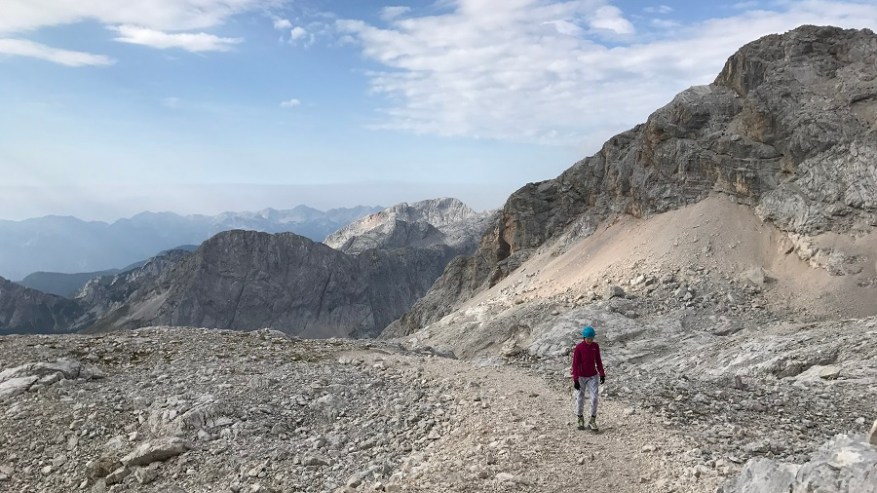 Ko si enkrat gor, si samo na polovici poti. Čaka te še najtežji del. Pot nazaj. Po pol ure počitka na vrhu, sva se odpravila nazaj po isti poti. Nekateri izberejo krožno pot čez Škrbino, a midva sva šla po enaki. Vzpenjalo se je kar nekaj pohodnikov, zato smo se malce več morali umikati. A vrh je bil osvojen in volje je bilo dovolj. Tudi za nazaj sva potrebovala eno uro in pol, saj je spust prav tako zelo zahteven in moraš biti dovolj previden, da ne zgrmiš v prepad. Rokavice in še enkrat rokavice. Ne predstavljam si vzpona brez njih. Sicer pa čudovito. Le jeklenic in klinov nekaj časa ne želim videti.