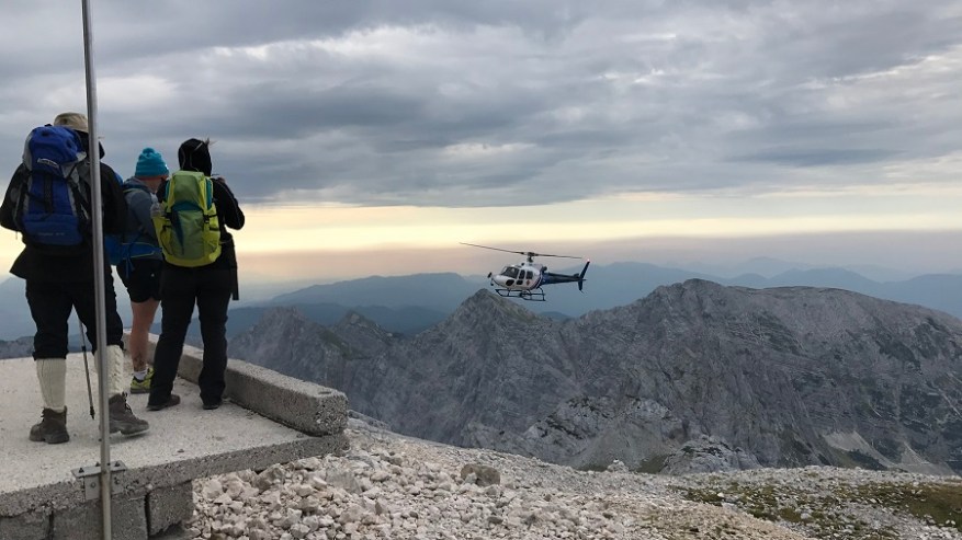 Od tukaj naprej vodi najprej malo bolj strma pot in tudi nekaj jeklenic in klinov boste že srečali, a nič pretresljivega. Kmalu pridete do razpotja na Kredarico ali na Planiko. Midva sva se odločila tudi tokrat za Planiko. Od tu naprej poteka planinska pot po melišču. Začelo je tudi močno pihati, zato mi je močan veter dodatno kradel energijo. Na trenutke sem že celo pomislila, da ob takšnem vetru ne bo mogoče na Triglav. V zraku naju je obletaval ves čas helikopter, ki je pridno oskrboval z vsemi dobrotami vse tri koče. Odpeljal je smeti in pripeljal ogromne zaloge hrane in pijače. Res fantastika. Kolikokrat sem pomislila na to, da bi se peljala kar z njimi. Na poti sva srečala nekaj planincev, ki so se že vračali, na gor pa sta me prehitela le dva fanta. Res praktično nikogar. Na Planiko sem prisopihala točno ob 9. uri zjutraj.