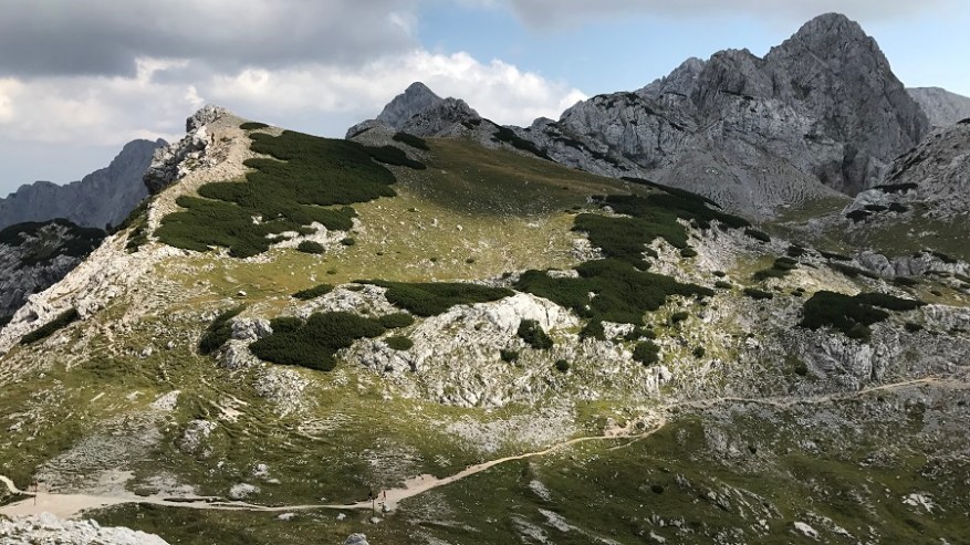 Ko sva pri Planiki pojedla sendvič, sva bila že rešena najhujšega. Sledila je pot nazaj do Vodnikovega doma. Na poti sva srečevala veliko število planincev, ki so se vzpenjali do Planike in tam prespali. Vikendi so res obljudeni tako s strani domačinov kot tudi tujcev. Bi rekla, da je številčno kar pol pol, če ne celo v prid tujim obiskovalcem. Na Vodnikovem domu sva srečala starega prijatelja in sva si končno privoščila malce daljšo pavzo pred zadnjim delom. Kavica in počitek 45 minut se je prav prilegel.