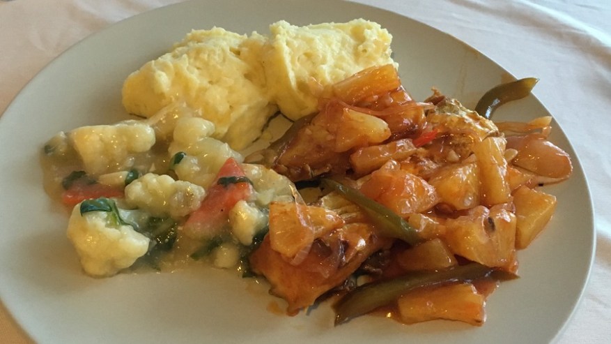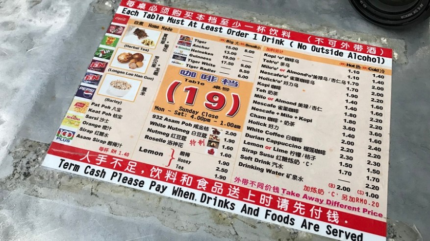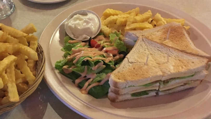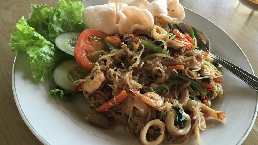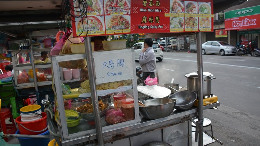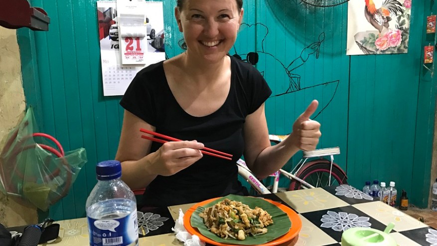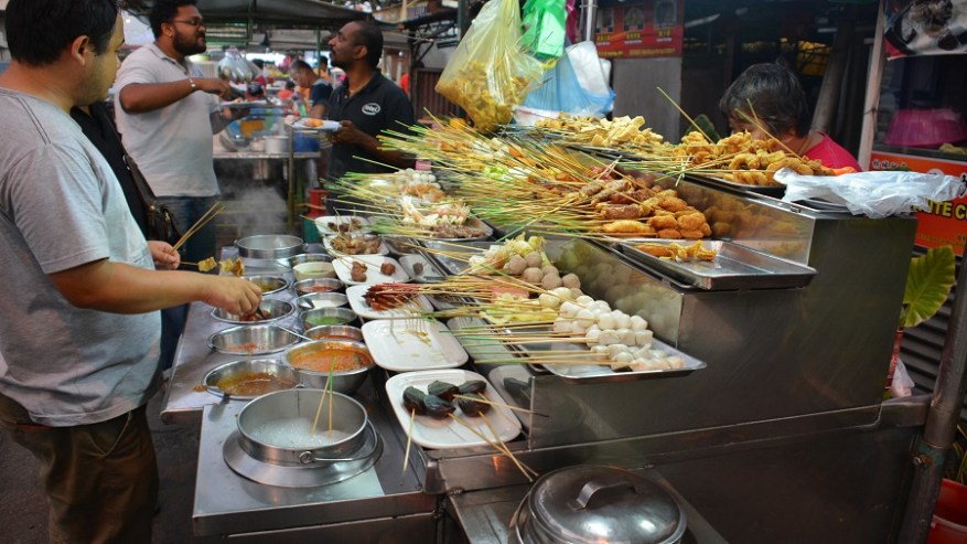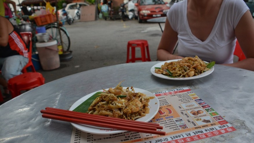 Za kosilo so prevladovali pečeni rezanci ali riž z dodatki. Škampi ali meso se odlično priležejo poleg nekaj izvrstne sveže zelenjave. Kot prilogo vam vedno postrežejo tudi pečeno jajce in hrustljave cvrtke. Tu in tam sva si privoščila kakšno zelenjavno juhico. Sicer pa je hrana izvrstna in sveže pripravljena, seveda pa je najboljša na ulici. Ulične hrane je za smešno nizke cene ogromno. V kulinarični prestolnici Azije Georgu Townu je ulična hrana še posebej izvrstna. Za večerjo sva si največkrat privoščila angleški sendvič, ki je bil vedno bogato obložen ter postrežen skupaj s pečenim krompirčkom. Enkrat pa se nisva mogla upreti niti dobri italijanski pici.