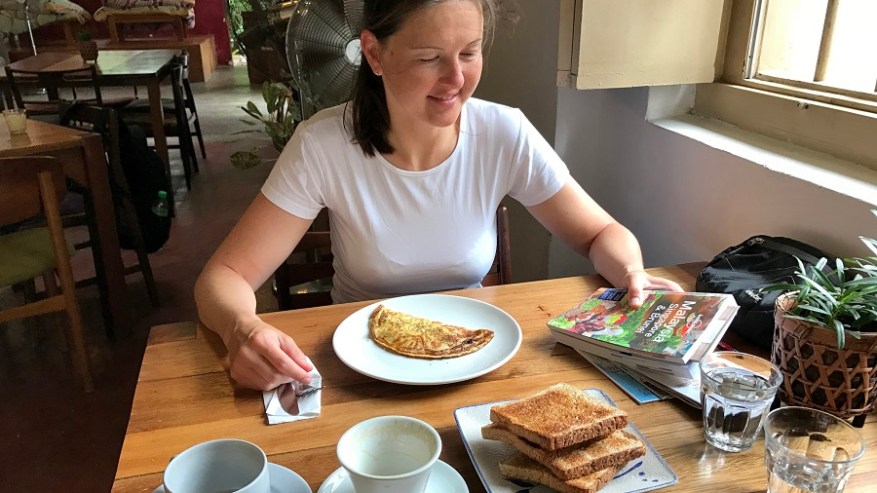 Zajtrke sva običajno pojedla že v nastanitvah, saj sva imela vključenega v ceno. Dneva ne začneva brez dobre kave in pravega čaja. Nato običajno sledi sveže tropsko sadje, jajčka na vse možne načine z dodatki ali brez, kakšen toast z marmelado. Skratka čisto domači zajtrk, le da ga spremlja odlično sladko tropsko sadje. Če nama ni uspelo, sva si privoščila na poti kakšen sendvič ali rogljiček.