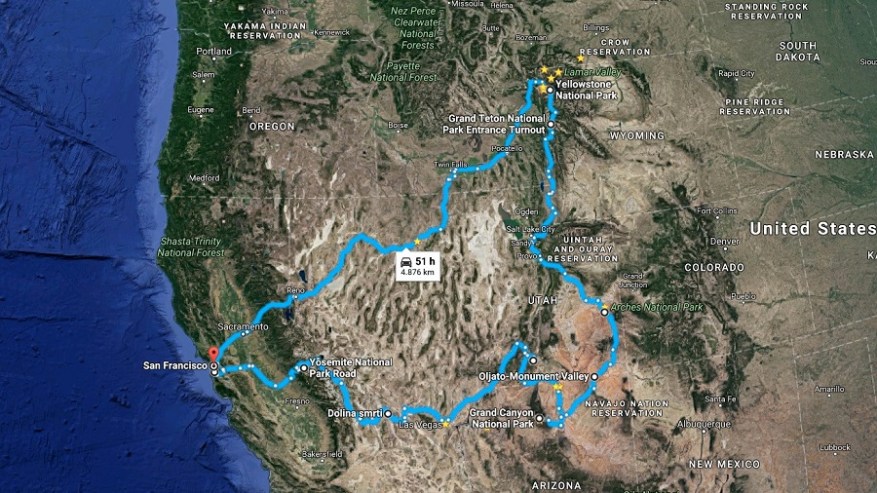 Napočil je čas za Združene države Amerike. Najin prvi obisk ZDA se obeta za jesen 2018. Ne bova potovala po mestih, ampak je v planu ogled desetih njihovih najbolj znamenitih in veličastnih nacionalnih parkov. Na seznamu so sloviti Yellowstone, veličasten Grand Canyon, gorati Yosemite, peščeni Death Valley, unikaten Bryce, pinki Zion, filmski Monument Valley, mistični Canyonlands, umetniški Arches in gorati Grand Teton. Na poti bi z velikim veseljem dodala še druge nacionalne parke, a nama čas ne bo dopuščal. Na 19-dnevno potovanje se bova odpravila konec avgusta, ko se množice obiskovalcev malce zmanjšajo, temperature pa so še vedno prijetne. Z najetim avtomobilom bova na celotni poti prevozila približno 6.500 km. Obiskala pa bova tudi sloviti San Francisco in igralniški Las Vegas.