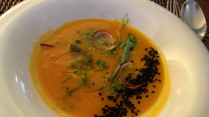 Sobotno kosilo v Kavarni in restavraciji Brioni v Kranju je vedno dobra izbira. Začela sva z osvežilno solato caprese. Sledila je jesenska bučkina juhica z limonino travo ter praženim sezamom in redkvico. Glavna jed je bila tokrat vrhunec celotne pojedine. Odlično pečene jagenjčkove kronce na posteljici pastinakovega pireja in špinačno peno. Zraven se je odlično podala bogata ratatuj omaka. Za sladico so nama postregli z brownijem, ki je bil obogaten s kepico vanilijevega sladoleda in karamelnim prelivom. Ni kaj za dodati – vrhunsko kosilo za le 16 EUR.