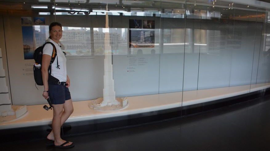 Dubaj ne bi bil Dubaj, če se ne bi kosili z najvišji, najširši, največji, najboljši na vsakem koraku. Seveda imajo tudi najvišjo zgradbo na svetu, ki se imenuje Burj Khalifa. Že od daleč se bohoti visoko v zrak, saj je visoka kar 828 m. Kar dvakrat višja je od vseh ostalih nebotičnikov. Nebotičnik so začeli graditi 21. septembra leta 2004, odprt pa je bil 4. januarja 2010. Najvišje nadstropje v zgradbi je na višini 584 metrov (Level 259), razgledni ploščadi pa sta na 555,7 m (Level 148) in 452 m (Level 144). Arhitekt Adrian Smith je dobil navdih za obliko zgradbe v islamski kulturi, še posebej pa ga je navdihnila pri oblikovanju mošeja v Samarri. Okoli celotnega kompleksa bodo v prihodnjih letih zgradili 30.000 stanovanj in kar 9 hotelov, že sedaj jo povezuje ogromno nakupovalno središče in sprehajalne poti. Zgradili so tudi krasno fontano, kjer je zvečer možno občudovati ples fontan ob spremljavi klasične glasbe. Vstopnina za obisk najvišje zgradbe na svetu je precej zasoljena. Odvisna je od ure obiska in nadstropja. Najdražja je vstopnina ob sončnem zahodu ter seveda ogled z višje točke. Midva sva se odločila, da obiščeva Burj Khalifo podnevi, ker sva si želela videti Dubaj in ne množico večernih luči. Hkrati pa nisva bila pripravljena odšteti ogleda z najvišje točke, ampak je bil Level 144 povsem dovolj. Tam je odprta ploščad in vidiš z višine zelo lepo cel Dubaj. Ko si na vrhu se zaveš, da je Dubaj še eno samo veliko gradbišče. Skoraj nobena zgradba še ni dokončana. Dubaj planira v prihodnjih štirih letih povečati število prebivalcev iz sedanjih 2,8 milijona na 6 milijonov in postati središče sveta. So na dobri poti. Hkrati pa se pripravljajo na svetovno razstavo Expo, ki ga bodo gostili leta 2020.