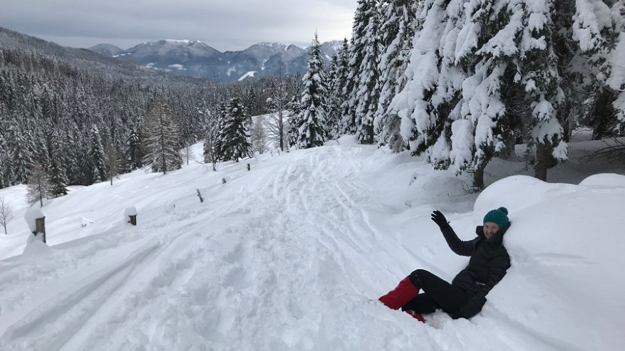 Zagotovo že veste, da je moj najljubši in najlepši kraj v Sloveniji Pokljuka. Pravljični gozdovi, mir in tišina, žvrgolenje ptic. Do včeraj je bil moj najlepši letni čas na Pokljuki jesen. A včeraj sem se znova zaljubila. Zaljubila v zimo, pravo zimo. Idealne razmere za zimsko pohodništvo so naju zvlekle na Pokljuko. Že po cesti se nama je smejalo, saj je sneg segal do vrha avtomobila. Parkirala sva šri športnem centru, obula pohodne čevlje in si nadela gamaše. Ko sva začela hoditi proti Uskovnici se nama je smejalo do ušes. Prava zimska pravljica. V koči sva se okrepčala, nato pa jo mahnila do planine Konjščica. Snega je bilo z vsakim korakom več in vedno bolj se nama je vdiralo. (Žal) nisva imela krpljev. Nikjer nikogar, dober meter snega in ptički, ki so se nama glasno smejali, ker sva gazila in gazila. Z vsakim korakom težje in težje. Na vrhu sva se vsakič pogreznila do pasu. Ni šlo dalje in sva obrnila. Planirala sva narediti najino krožno pot, a nama je tik pred koncem zmanjkalo moči. Predvsem pa sva se obrnila, ker nisva vedela, kakšna je pot po drugi strani. Verjetno še manj prehodna. Vrnila sva se do Uskovnice in po isti poti nazaj do izhodišča nasmejana do ušes.