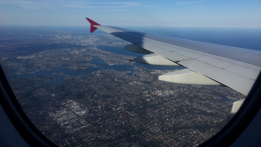 Po dolgem 15-urnem poletu z našim Airbusom 380 končno pristanemo na letališču v Sydneyu. Ura je 18:45 po lokalnem času in na poti sva izgubila kar 10 ur, zaradi časovne razlike. Nazaj grede bo veliko bolje. Zelo hitro prevzameva prtljago, turistično vizo urediva brez enega dodatnega papirja v nekaj minutah, nič ne pregledajo niti prtljage, tako da sva res v nekaj minutah na izhodu. Tam si urediva dokaj ugoden shutlle prevoz do hotela v centru mesta in kupiva lokalno SIM kartico s podatki za uporabo interneta. Zunaj se začne večeriti in prvi vtisi mesta so res krasni. Nastanjena sva v skromni sobici, a sva oddaljena 30 minut hoje do operne hiše. Po sedenju na letalu nama prija večerni sprehod do znamenite operne hiše. Uau, bela lepotica v zalivu. Čudovito.