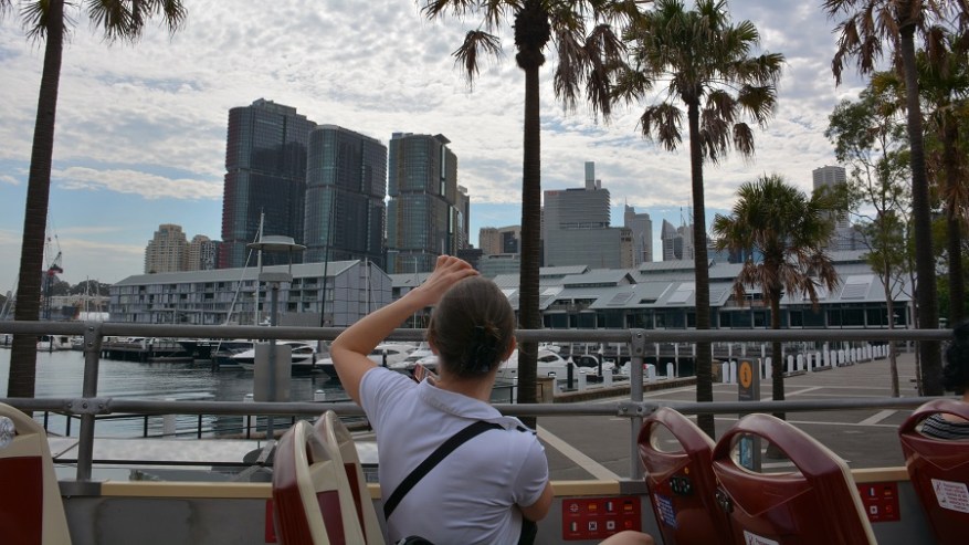 Ker sva imela na voljo le en dan, sva se odločila za (pre)drag turističen avtobus Hop On Hop Off, ki vozi po središču mesta do vseh znamenitosti. Zadnje čase obožujeva ta avtobus, ker ne izgubljaš časa z prevozom, hkrati pa lahko kar z avtobusa ogleduješ mesto, znamenitosti in dogajanje. Najprej sva si privoščila zajtrk v sosednji kavarni – mmm, sendvič z avokadom in sirom. Cene? Ni prehudo za center Sydneya. Na ulicah naju je presenetilo veliko število beračev, odvisnikov od mamil in brezdomcev. Vstopila sva na avtobus in se odpeljala celoten krog po mestu med največjimi znamenitostimi. Znamenita operna hiša in veličasten pristaniški most sta navdihujoča.