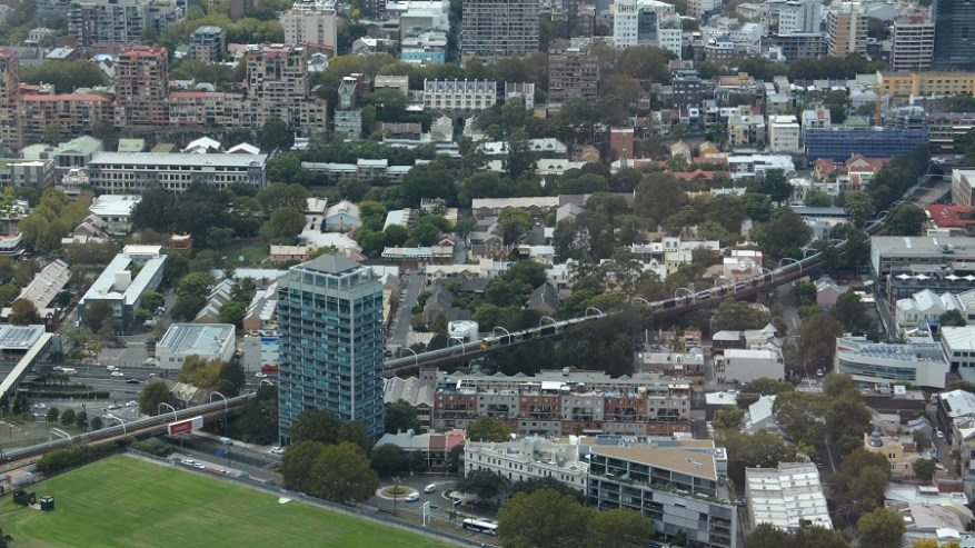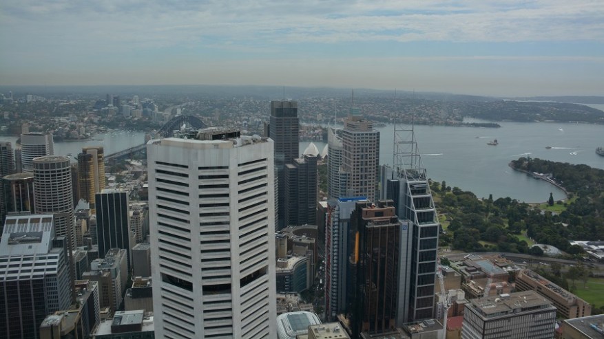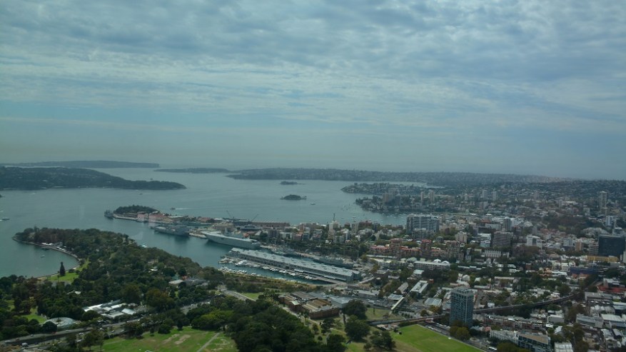 Prvič sva izstopila pri Hyde Parku, kjer sva se povzpela na razgledni stolp Sydney Tower Eye, da bi videla Sydney še s ptičje perspektive. Razgledni stolp je najvišja zgradba v Sydneyu in druga najvišja zgradba v Avstraliji. Meri 309 metrov in ima zaprto razgledno ploščad, odprt pa je bil za javnosti že leta 1981. Razgled na mesto je simpatičen. Malce neposrečena je le lega stolpa, saj zakriva opero in skoraj povsem tudi most.