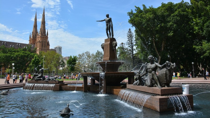 V neposredni bližini razglednega stolpa je neprevelik, a zelo lep park Hyde, na sredini katerega je tudi krasna fontana. V parku je bilo zelo veliko ljudi, tako domačinov kot seveda tudi turistov. Čez cesto je postavljena krasna katedrala St. Mary, ki je hkrati tudi največja v Avstraliji.
