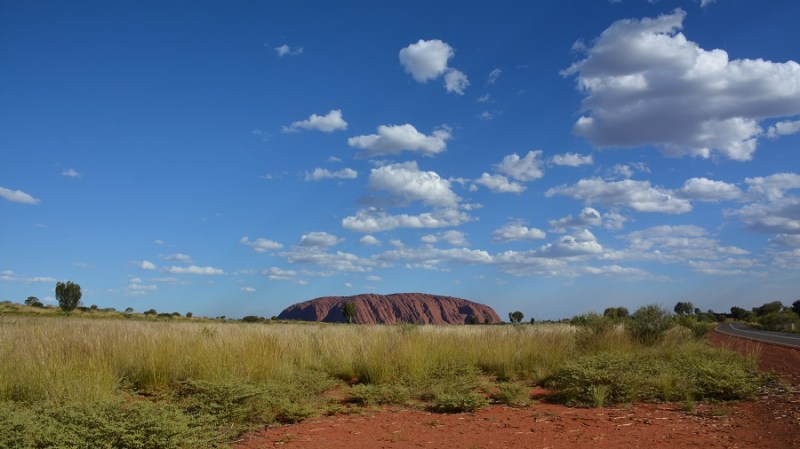 Po zelo vroči noči v Coober Pedyu sva zgodaj zjutraj nadaljevala pot na sever. Prvotni plan sva imela potovanje do nacionalnega parka Kings Canyon, ki je menda zelo lep in vreden ogleda. A naju je vremenska napoved za naslednje dni odvrnila, saj je bil za naslednje dni za Uluru napovedan dež. Vse, kar sem si želela res želela na potovanju po Avstraliji, je bilo doživeti in videti prekrasno skalo obsijano s soncem. Tako sva dokaj hitro nadaljevala proti severu. Le vsaka naslednja bencinska črpalka na poti je bila najina postojanka za točenje goriva. Daljši postanek za kavico in čaj sva naredila v Erlundi, kjer sva celo videla še kar nekaj popotnikov in srečala Slovenko, ki živi že od malih nog v Avstraliji in dela na tej bencinski črpalki. Nadaljevala sva proti zahodu in do Yulare, si rezervirala kamp prostor in se odpeljala v nacionalni park Uluru – Kata Tjuta. Ko sva s ceste prvič zagledala ta čudoviti rdeči osamelec sredi popolne ravnine na svetlo zeleni travnati površini, nama je zastal dih. Upravičeno je Uluru najlepša skala na svetu in sodi med TOP 3 najlepše kraje na svetu.