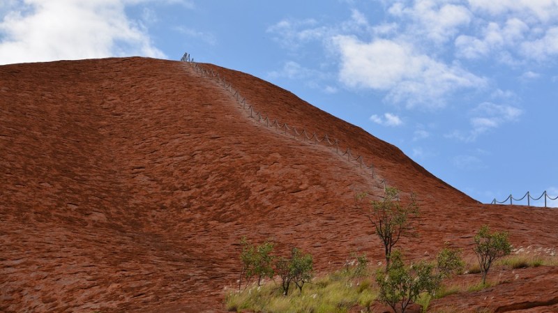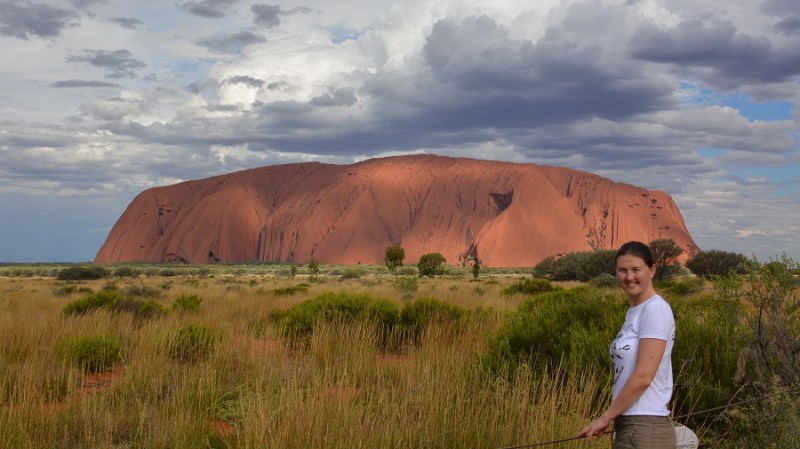 Pred peto uro zjutraj sva se zbudila in se odpeljala v trdi temi do svete gore Aboriginov. Uluru ali Ayers Rock je največji osamelec na svetu, ki je znan že iz kamene dobe, ko so kot prvi prebivalci Avstralije na to celino pripluli Aborigini. Gora je sestavljena iz popolnoma rdeče zemlje, zato je še toliko bolj posebna na pogled. Uluru se nahaja skoraj natanko v geografskem središču Avstralije, je največji skalni monolit na svetu. Dviguje se 348 metrov nad popolnoma ravno okolico. V širino meri 2 kilometra, v dolžino pa 3,6 kilometrov. Zgrajen je iz rdečkastega peščenjaka in je ena glavnih naravnih znamenitosti celine. Znan je zaradi svoje nenavadne velikosti in lege, pa tudi zaradi navideznega spreminjanja barve, ki so najintenzivnejše ob sončnem vzhodu in zahodu. Uvrščen je tudi na UNESCO seznam naravne dediščine. Za prvotne naseljence Avstralije, Aborigine je Uluru sveti kraj. Uluru je del nacionalnega parka, kamor se uvršajo tudi manj znani sosednji osamelci, ki se imenujejo Kata-Tjuta (The Olgas). Od Uluruja so oddaljeni približno 40 kilometrov.