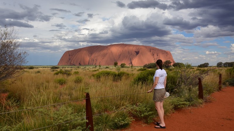 Zbudila sva se pred peto uro zjutraj, ko je bila zunaj še trda tema in se odpravila do razgledne točke svete gore Aboriginov, da bi doživela epsko vzhajanje Sonca. Precej časa sva čakala in ko je množica že praktično odšla, sva ostala na prizorišču povsem sama in čakala na prekrasne rdeče barve Uluruja. Čas je bil poplačan z enim najlepših prizorov potovanja. Romantiko so kvarile le muhe – na stotine muh, ki ti lezejo v vse odprtine obraza. Pred njimi sva se rešila z nakupom mreže za glavo. Nadaljevala sva s hojo okoli svete gore. Kljub jutranjim uram in dokaj oblačnem vremenu, sva zaradi vročine komaj prepešačila 11 km dolgo pot. Ogledala sva si tudi kulturni center Aboriginov, celo popoldne pa nato iskala le senco. Klimatiziranih prostorov žal v celi Yulari ni, zato je bilo peklensko popoldne. Zvečer sva si še enkrat privoščila bolj dramatičen ogled sončnega zahoda, saj so se nad Uluru zgrnili temni oblaki. Dež je padal še celo noč. Le kdo bi si mislil?!